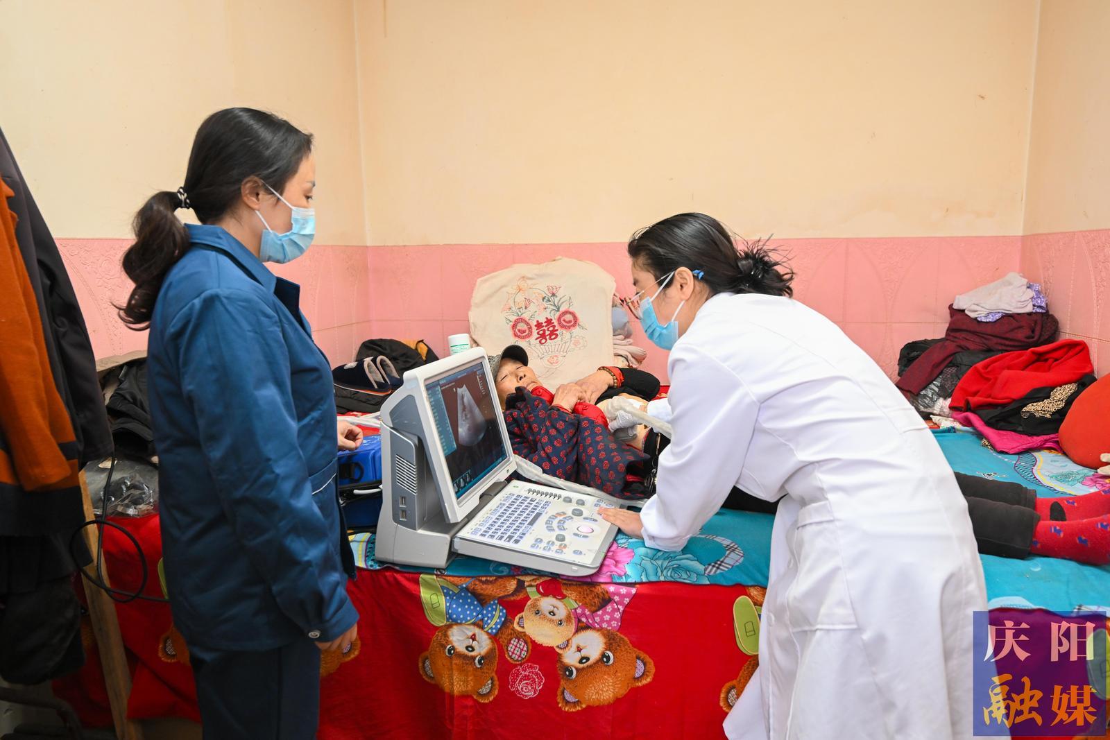 家庭醫(yī)生簽約服務(wù)團隊為患者做超聲檢查。