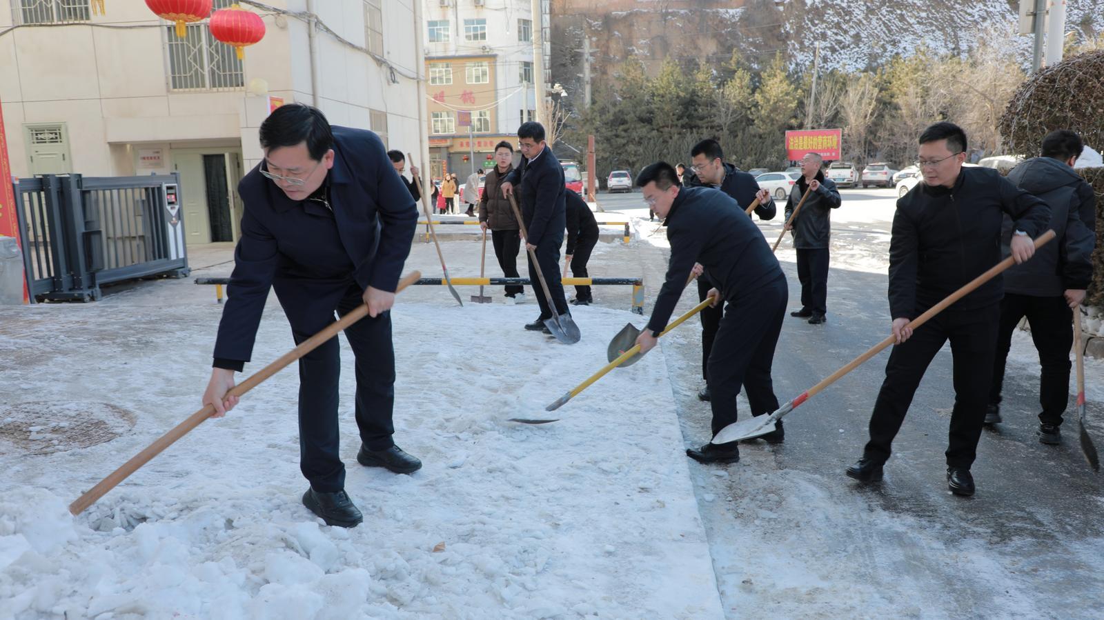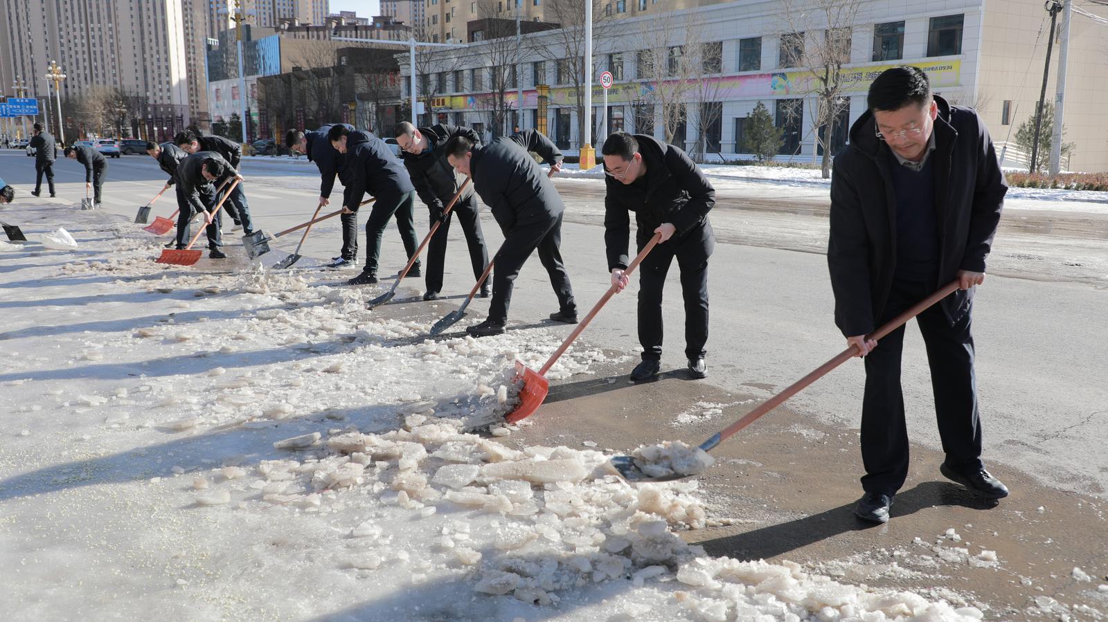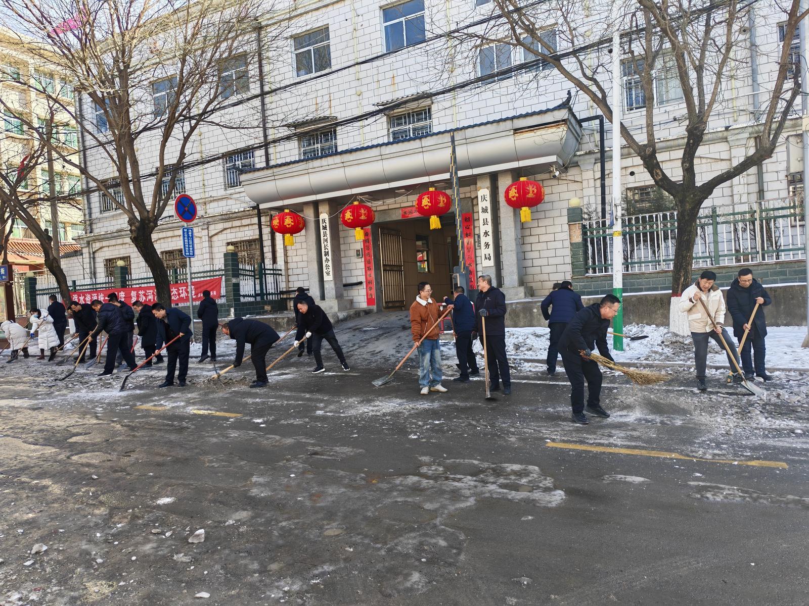 2月5日,春節(jié)后上班的第一天,濃濃的年味還未消散,很多人還沉浸在節(jié)日的歡樂(lè)中,而慶城縣干部職工熱火朝天的開(kāi)啟了第二輪除冰掃雪行動(dòng)。