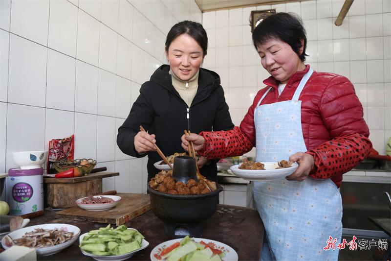 春節(jié)期間,踏著冬雪,走進(jìn)西峰區(qū)后官寨鎮(zhèn)路堡村浩寧會家。農(nóng)家小院里,高掛的紅燈籠映著白雪,顯得格外喜慶。灶房里,57歲的浩寧會和兩個(gè)女兒正忙碌著裝暖鍋,翠綠的蘿卜、鮮嫩的豆腐、紅白相間的雞血面、黃燦燦的黃花菜……鍋爐上,一口鐵鍋正燉著自家養(yǎng)的土雞,香氣誘人。