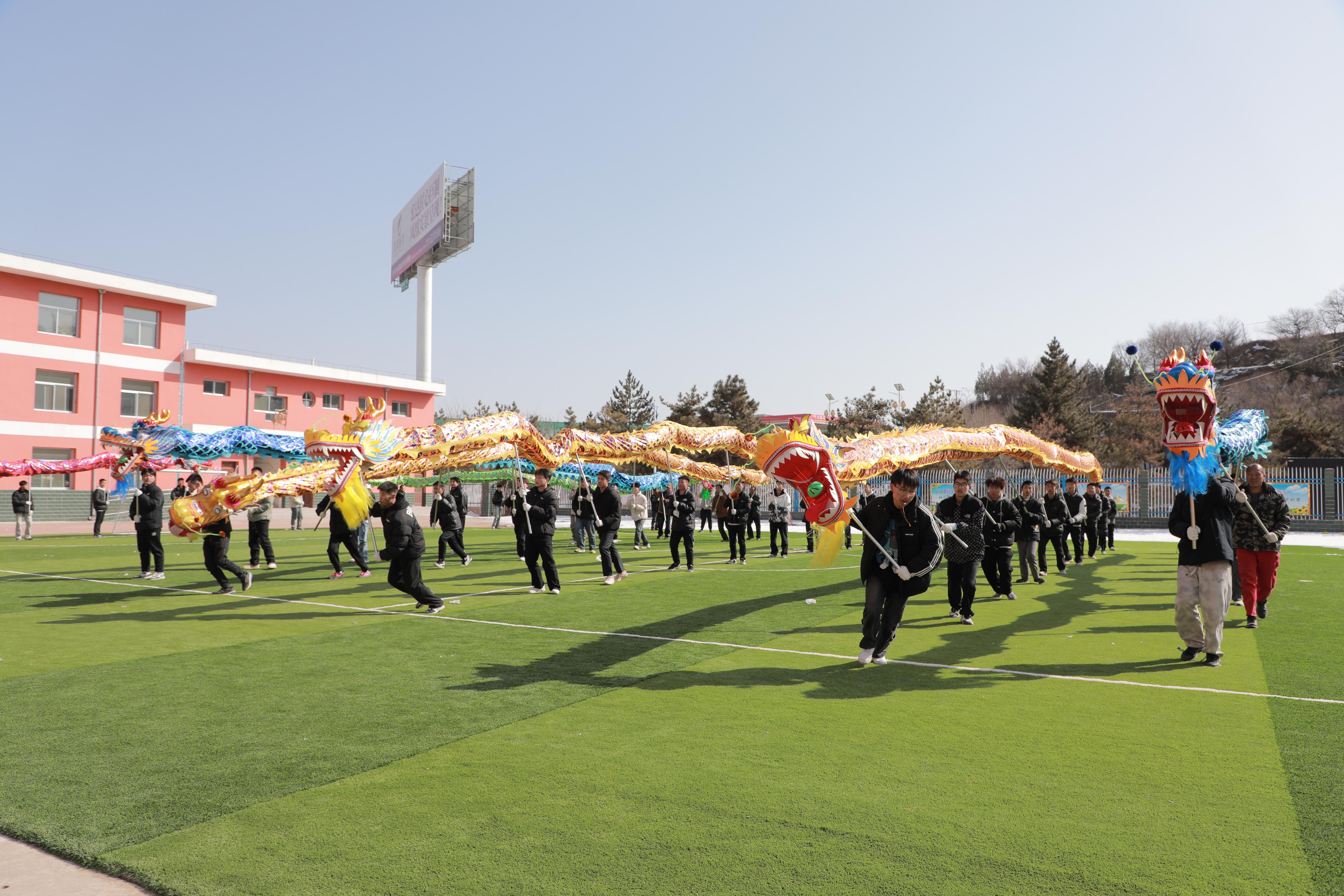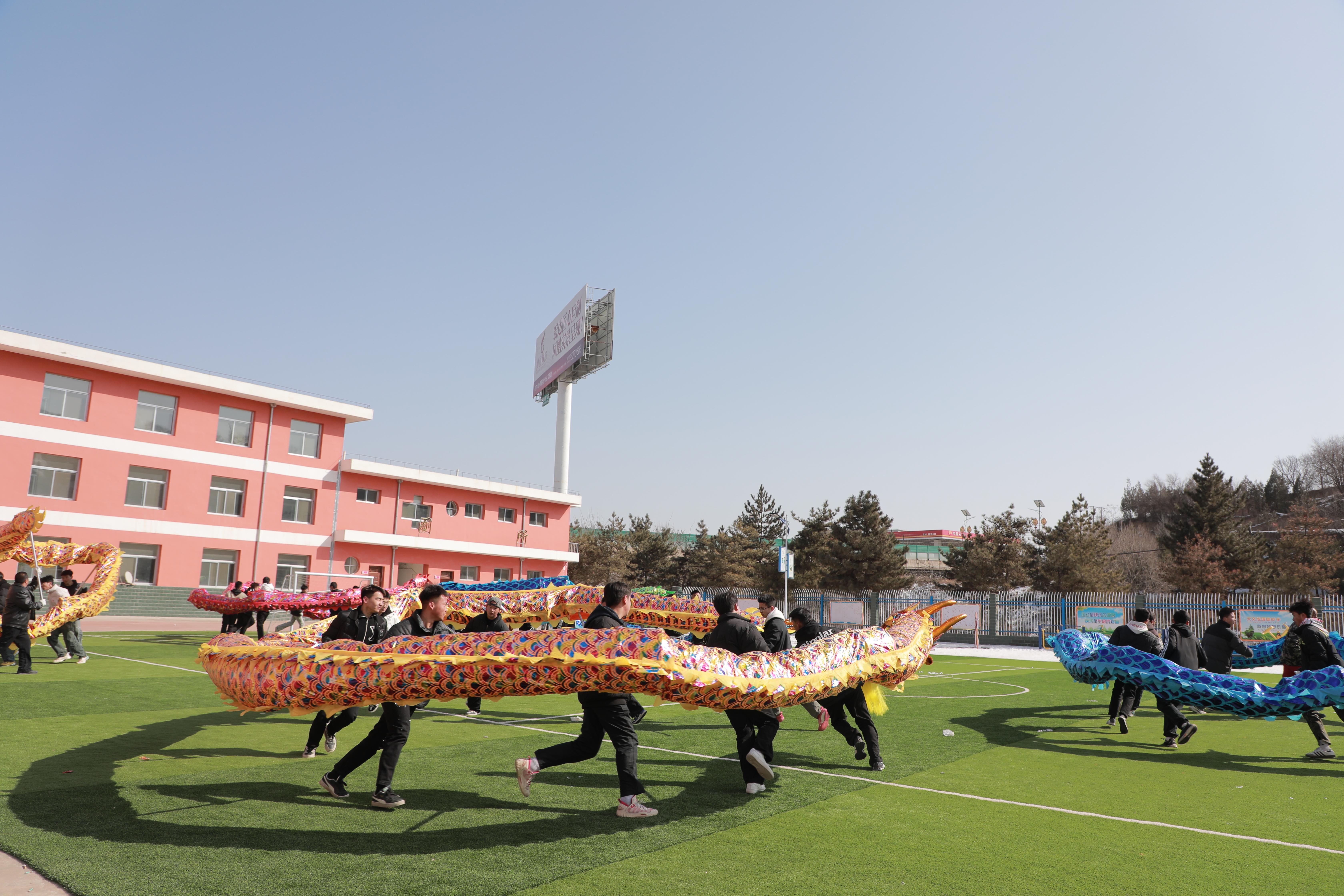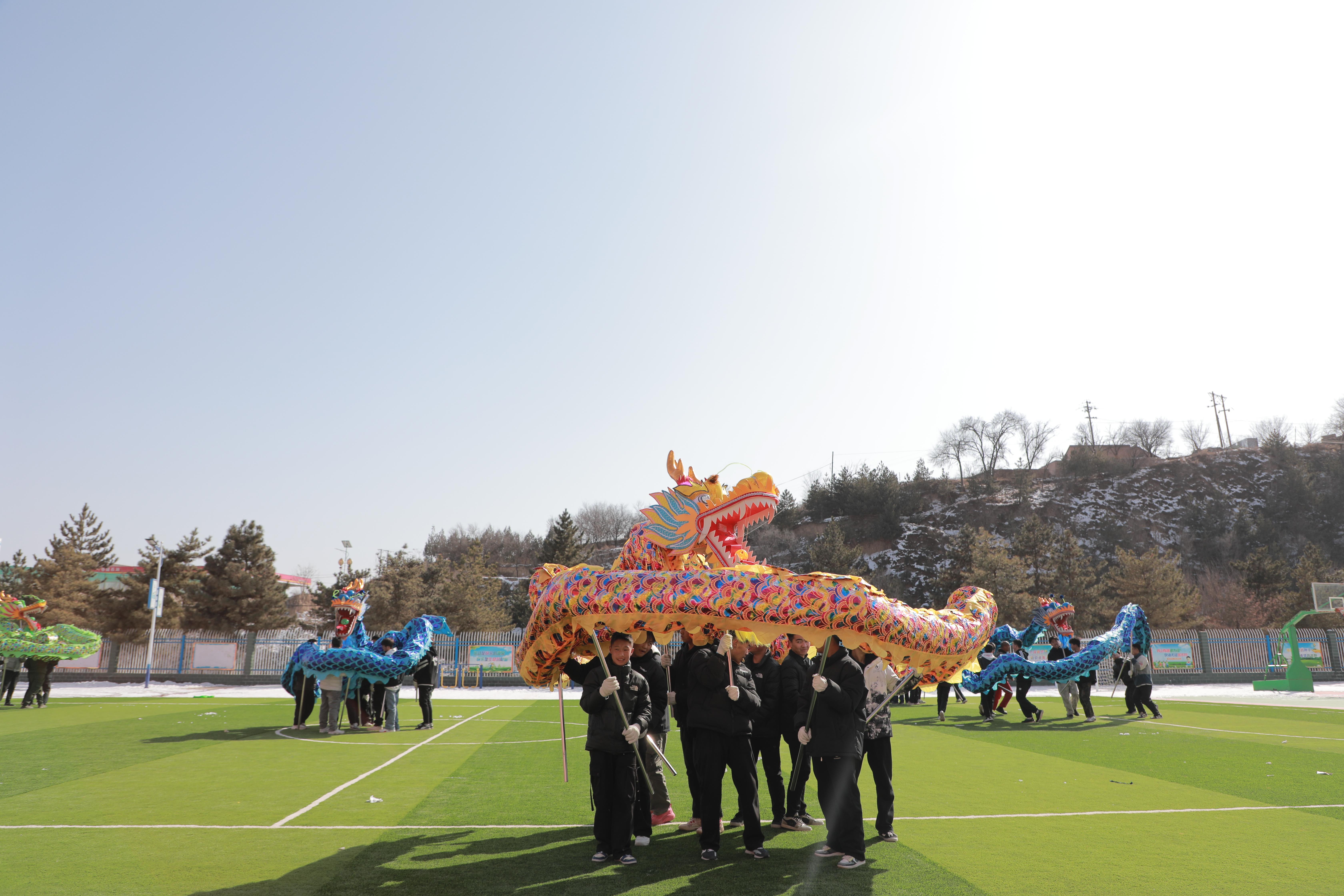 社火排練中,《九龍鬧春》《雄獅拜年》最為亮眼,嶄新的道具讓人耳目一新。
