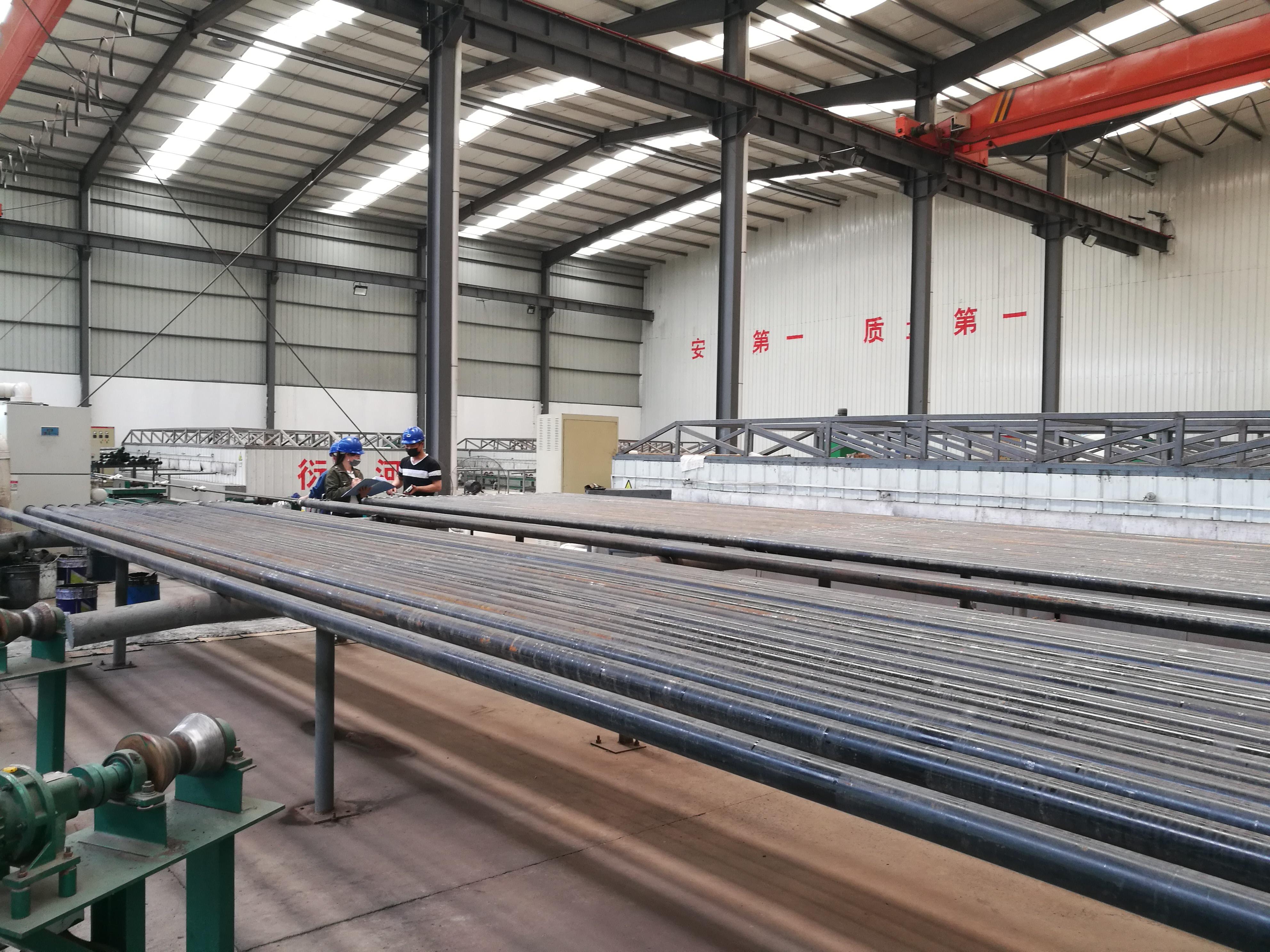 “目前看到的是油管生產(chǎn)流水線,第一步是熱清潔,把油管雜志燒掉,再就是噴殺除銹,第一遍噴涂,完了二遍噴涂,然后檢測(cè)漏點(diǎn)厚度,然后就是除銹、噴漆、打包,成品入庫(kù)?!备拭C衍河石油管道涂層有限公司生產(chǎn)車(chē)間主任羅言戀說(shuō)道。
