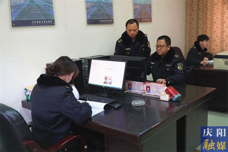 ▲環(huán)縣道路運(yùn)輸管理局工作人員室內(nèi)日常辦公中。