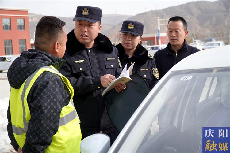 ▲環(huán)縣道路運(yùn)輸管理局工作人員在縣城盤旋路開展路檢。