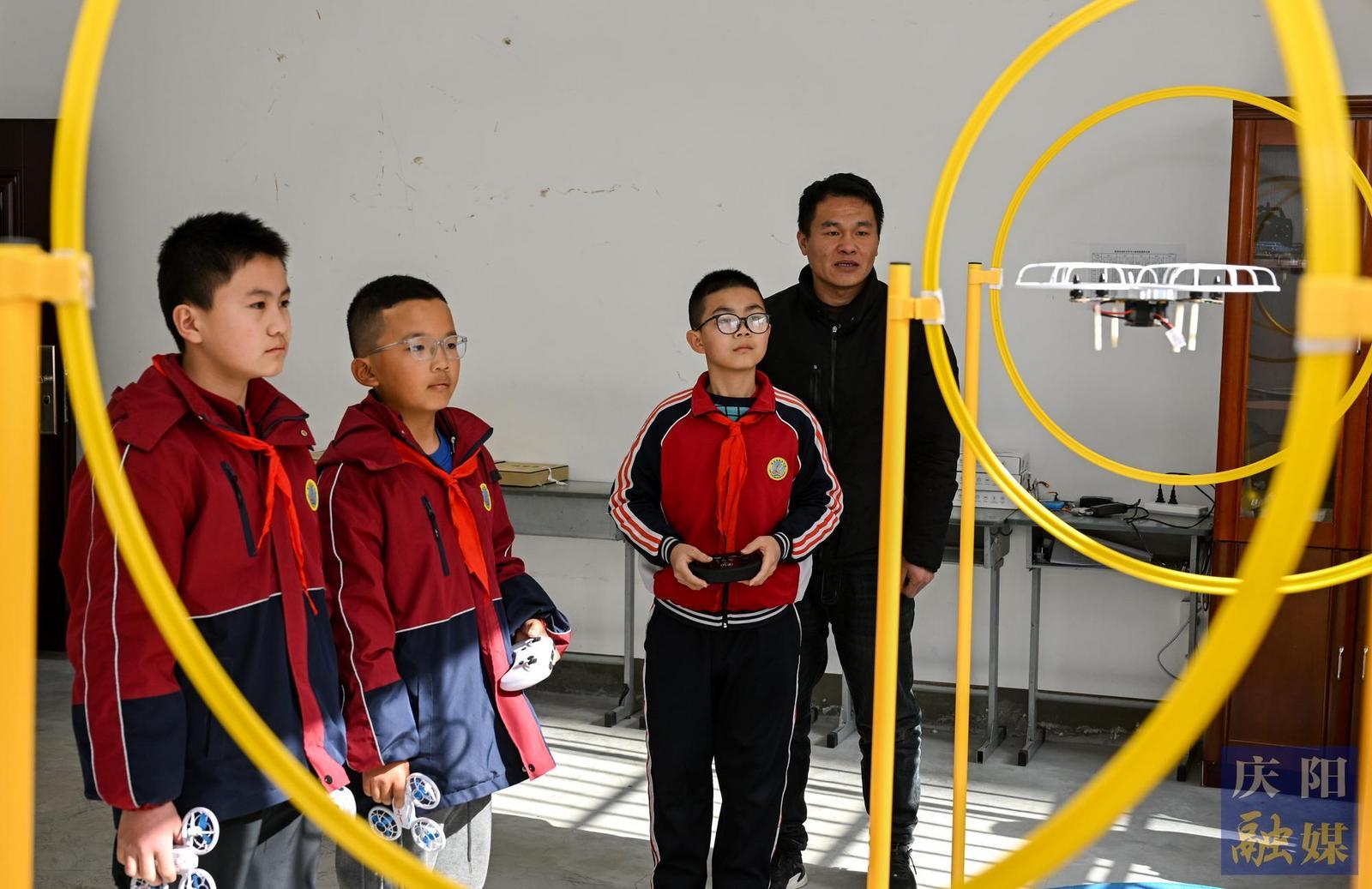 2月25日,鎮(zhèn)原縣南區(qū)小學(xué),學(xué)生們?cè)跓o(wú)人機(jī)社團(tuán)課上操控微型無(wú)人機(jī)穿越障礙,訓(xùn)練操作技術(shù)。
