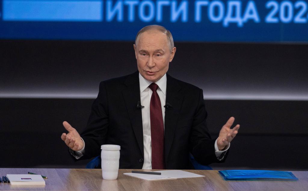 2024年12月19日,在俄羅斯首都莫斯科,俄羅斯總統(tǒng)普京在“年度盤點”活動上講話。新華社記者白雪騏攝