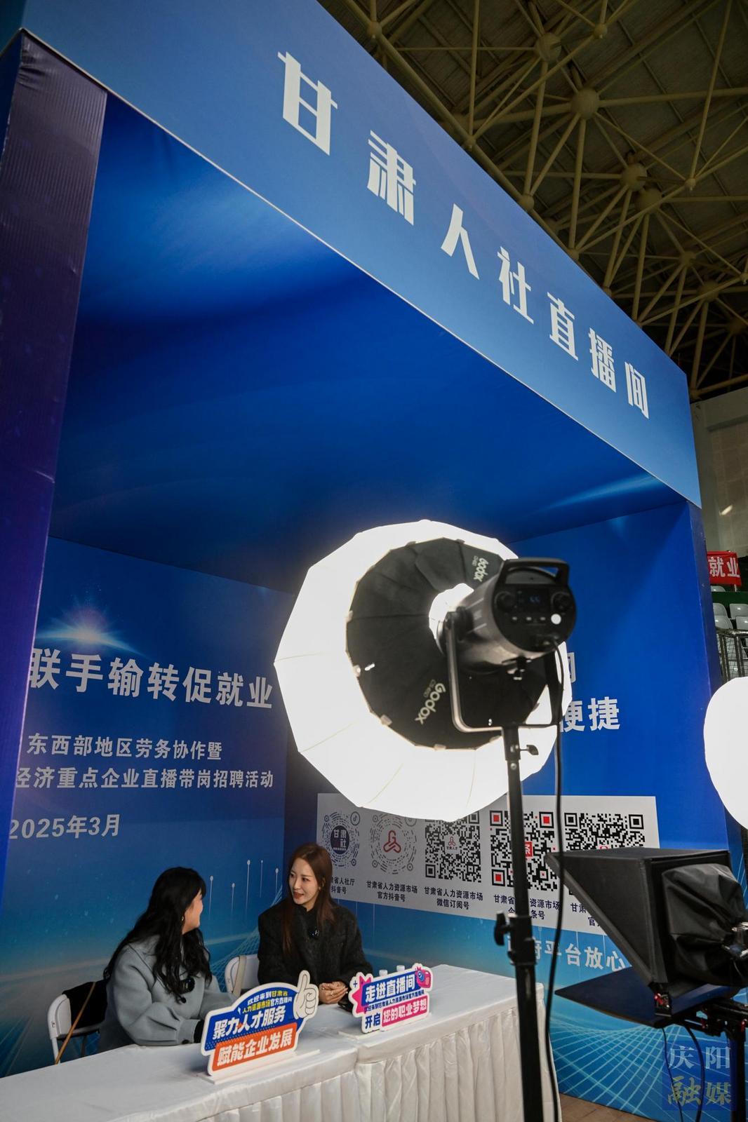 活動現場,甘肅人社直播間進行直播帶崗。
