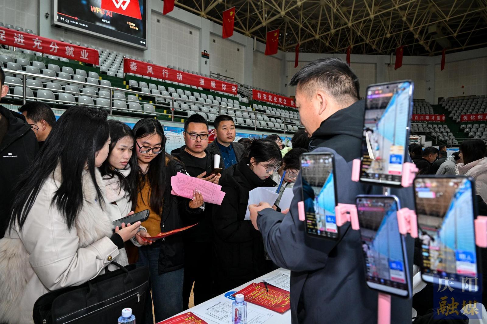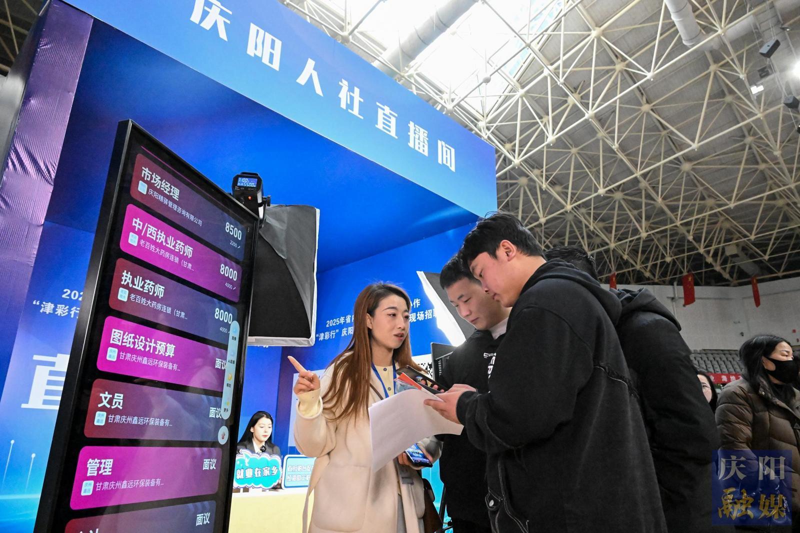 活動現場設置350個招聘展位,吸引天津協作企業(yè)及省內嘉峪關、金昌等市重點企業(yè)參與,涵蓋數字經濟、制造業(yè)等領域。同步開展的“直播帶崗”活動聯合天津“中天直播間”、甘肅省人社廳及慶陽本地直播間,實現三地聯動,百家企業(yè)在線推介崗位。網絡招聘專區(qū)依托“如意就業(yè)”平臺,提供線上求職服務?;顒蝇F場還設置了政策服務區(qū),天津市為畢業(yè)生提供簡歷優(yōu)化、面試指導,慶陽市推出創(chuàng)業(yè)貸款、技能培訓等14項政策咨詢。