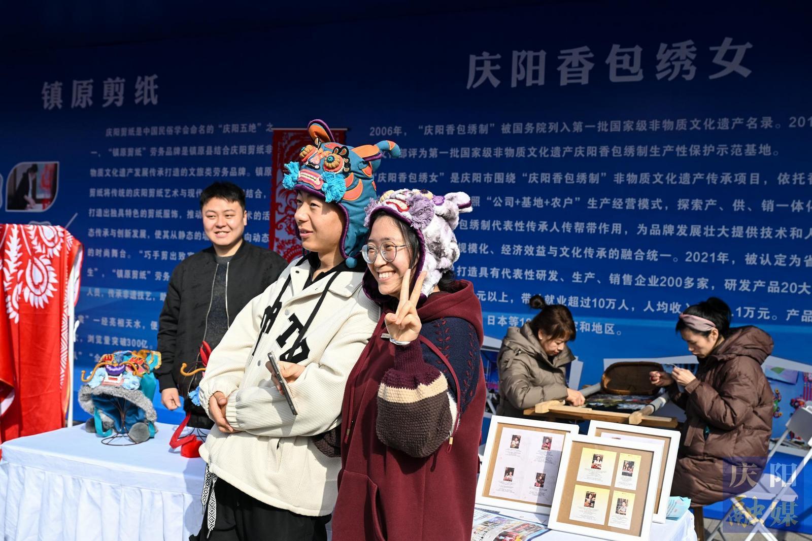 求職者在慶陽市首屆勞務品牌展示展演交流活動現場體驗慶陽民俗文化魅力。