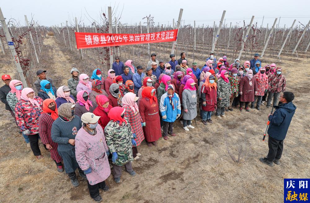 慶陽網(wǎng)訊(慶陽融媒記者 陳飛)3月5日,記者走進(jìn)鎮(zhèn)原縣五指平園果業(yè)有限公司蘋果基地,一幅生機(jī)勃勃的春管圖映入眼簾。七八十名工人穿梭于果樹間,有序開展剪枝、涂藥、清理樹枝等工作,地頭上果園管理培訓(xùn)也正如火如荼。公司技術(shù)主管結(jié)合氣候與蘋果生長規(guī)律,圍繞早春清園、病蟲害防治等內(nèi)容詳細(xì)講解,并現(xiàn)場示范果樹修剪、嫁接技術(shù)。