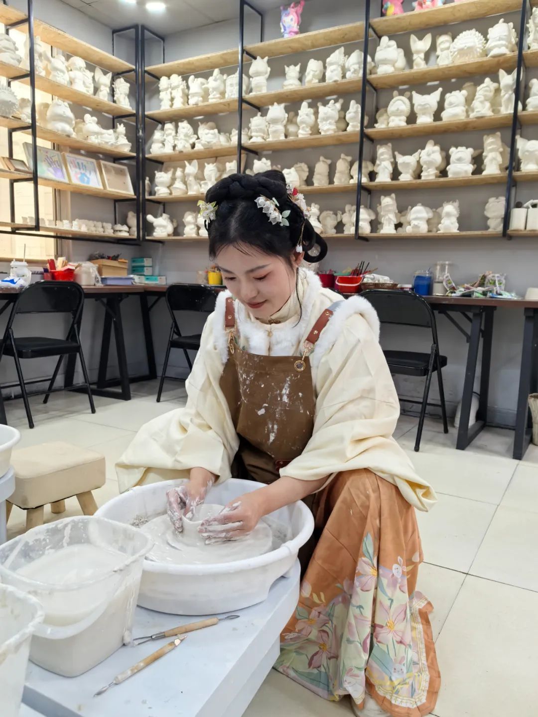 中華民族素有“衣冠上國”的美稱,支隊專設(shè)了國風體驗環(huán)節(jié),帶領(lǐng)大家穿越時空,體驗漢服之美,學習古代妝容之韻。平日里忙于工作的女同志們將秀發(fā)盤起,佩戴上精致的珠釵步搖,她們涂抹胭脂,描繪秀眉,點綴口紅,換上錦衣華服,從“火焰藍”化身為“古典佳人”。這一刻,她們仿佛從歷史長河中款款走來,既有巾幗英雄的颯爽英姿,又不失古典女子的溫婉典雅。這一場穿越時空的美學之旅,讓她們在傳統(tǒng)與現(xiàn)代的交融中,展現(xiàn)了新時代女性多面的風采與自信。