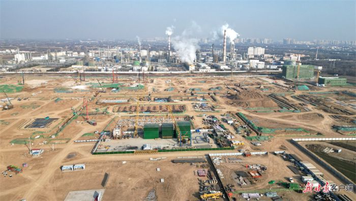 離慶陽瑞海嘉提氦項目不遠(yuǎn)處的慶陽同欣50萬噸/年輕烴深加工項目建設(shè)現(xiàn)場,機(jī)械轟鳴,車輛穿梭,一派火熱建設(shè)場景。