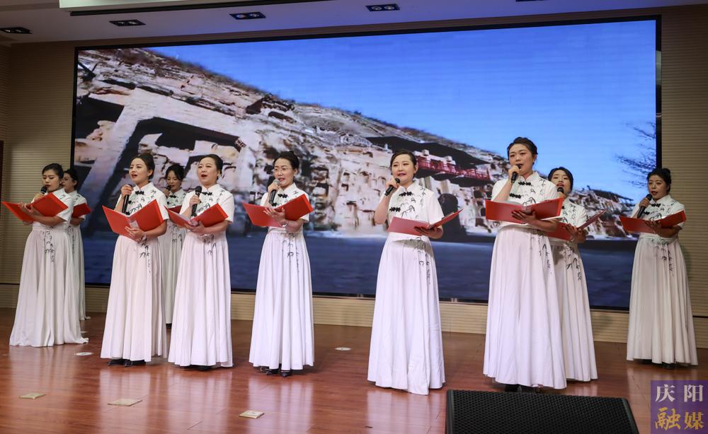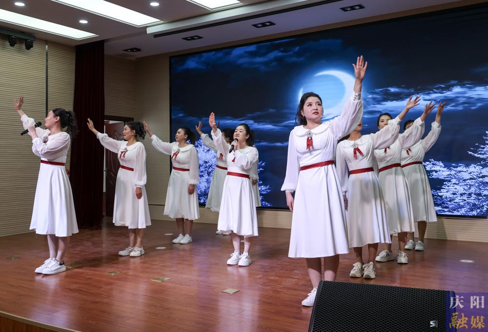 朗誦會(huì)以“華彩綻放 唱響慶陽”“永跟黨走 不忘初心”“風(fēng)雨百年 盛世中國”三大篇章展開。在恢弘的《滿懷激情唱慶陽》旋律中,演出拉開帷幕。朗誦者以飽滿的熱情演繹了《不忘初心》《毛澤東詩詞展演》《夢想照亮中國》等經(jīng)典作品,鏗鏘之聲再現(xiàn)革命年代的豪情壯志;《吉慶陽光》《聽村莊生長的聲音》《騰飛吧,慶陽!》等當(dāng)代詩篇回顧過去,展望未來,充滿對慶陽的深情禮贊。節(jié)目通過分角色誦讀、情景再現(xiàn)等表演方式,配合背景視頻、圖文、音樂、燈光等元素,采用“詩、樂、畫”融合的多媒體舞臺(tái)呈現(xiàn)。追憶歷史、歌頌祖國、贊美慶陽,體現(xiàn)了全市廣大干部職工弘揚(yáng)中華優(yōu)秀傳統(tǒng)文化,不忘初心、牢記使命的歷史擔(dān)當(dāng)和對大美慶陽的熱愛與感恩。