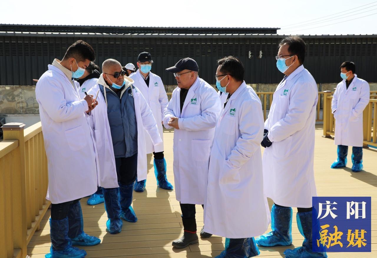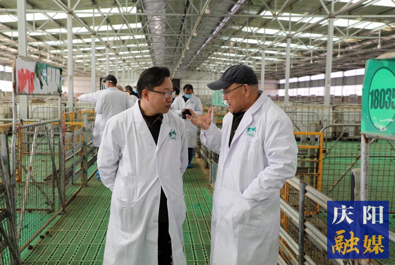 慶環(huán)公司負責(zé)人李國智和公司育種專家查看羊舍。