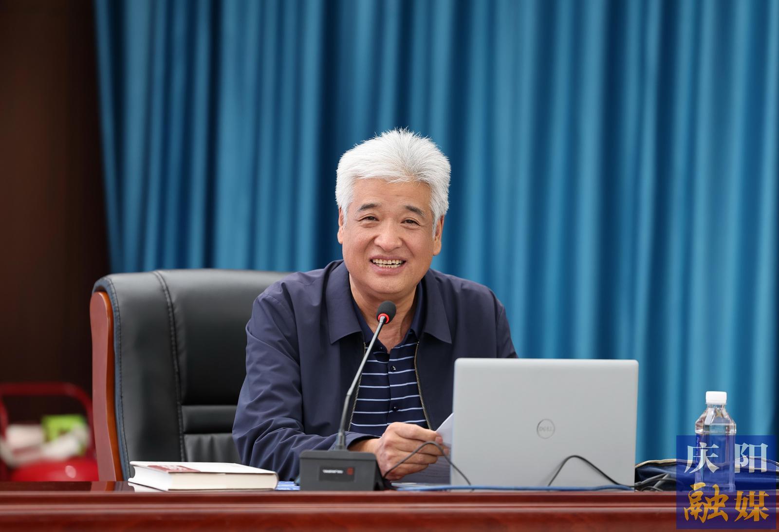 原甘肅日報(bào)社編委、評(píng)論部主任,高級(jí)編輯尚德琪以《關(guān)于新聞報(bào)道的十個(gè)問題》為題授課(4月22日攝)。