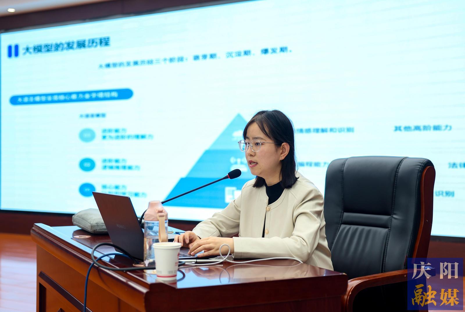 新甘肅云服務(wù)中心副總監(jiān)楊曉瑞以《AI重塑工作模式——從效率工具到智能伙伴》為題授課(4月22日攝)。