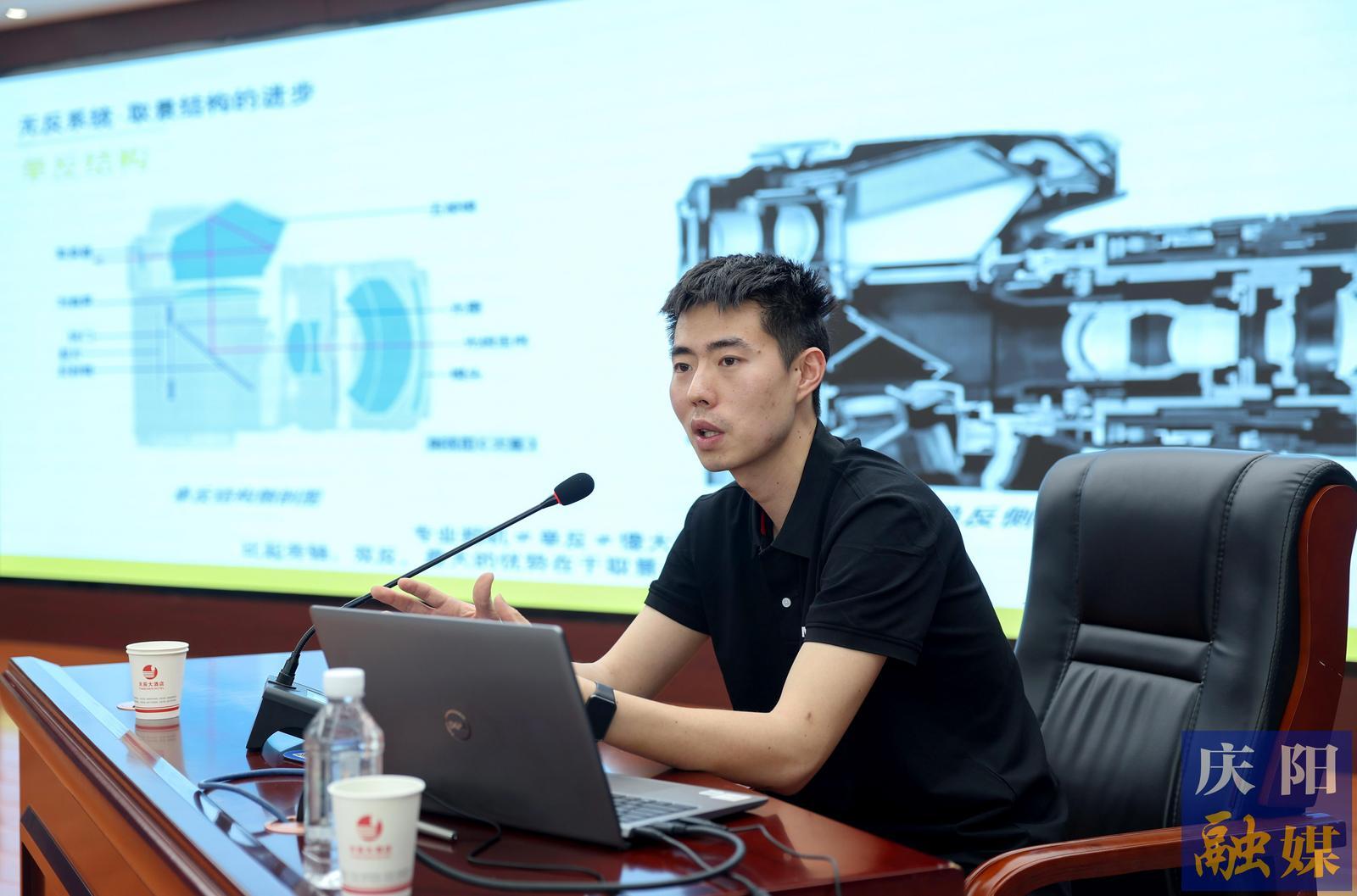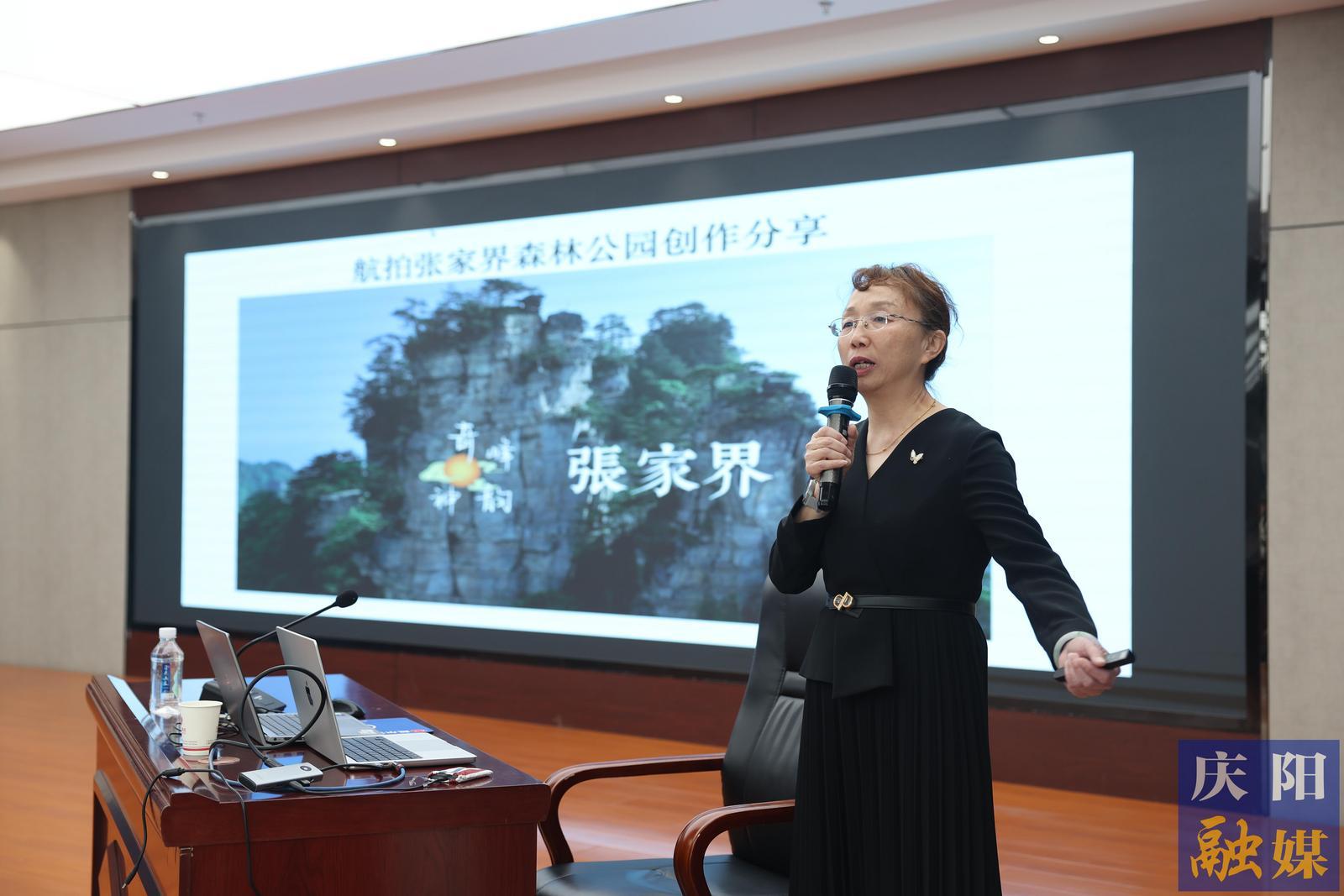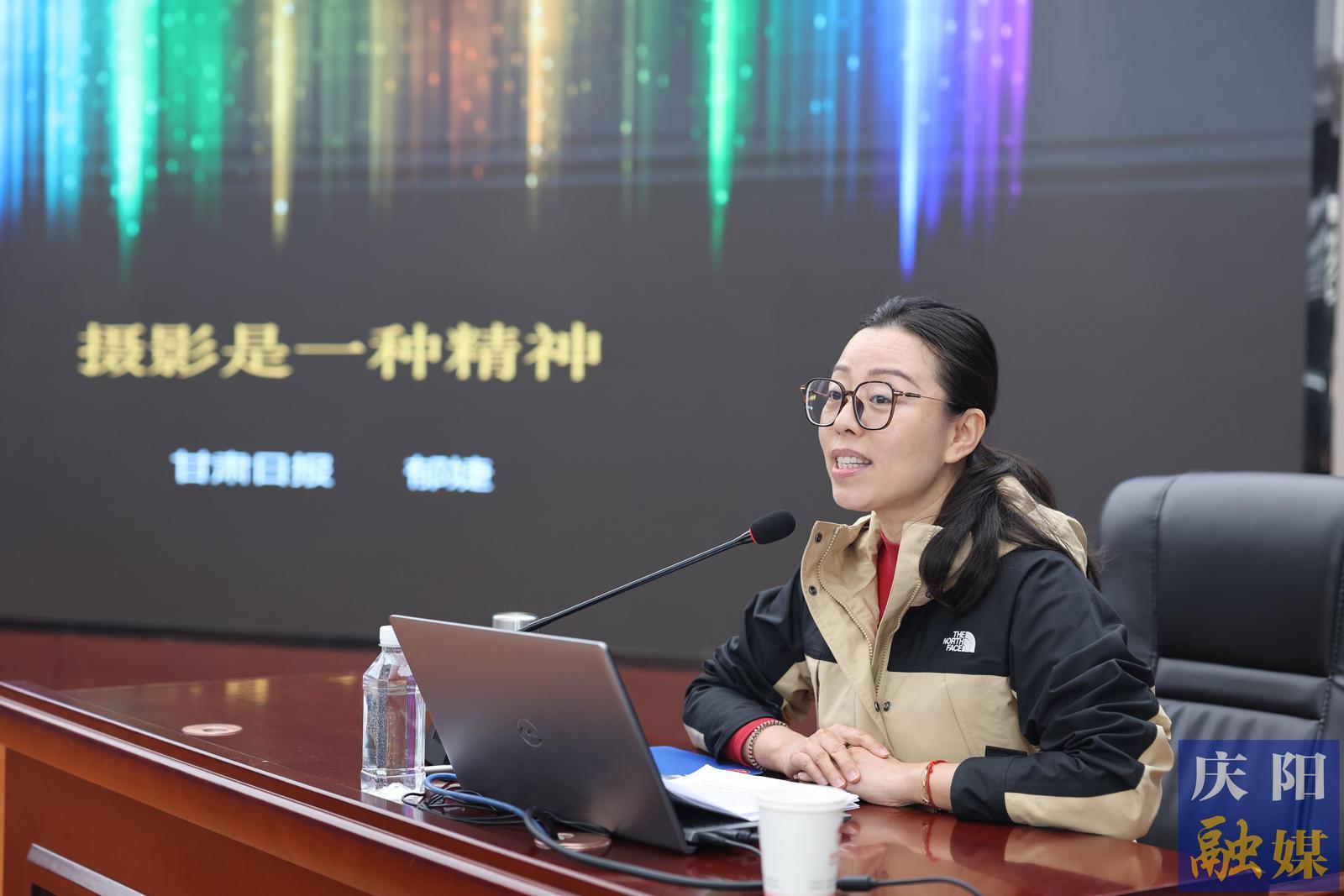 甘肅日報(bào)社攝影部副主任郁婕以《攝影是一種精神》為題授課(4月23日攝)。