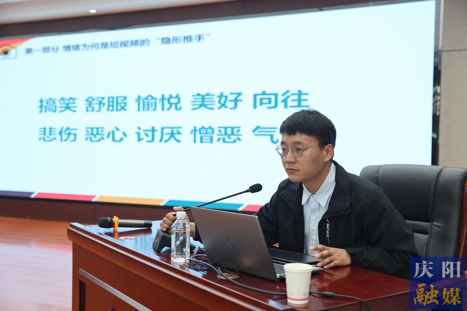 蘭大黨委宣傳部(融媒體中心)廣播視頻新聞部馬強(qiáng)以《要做情緒穩(wěn)定的人,不做情緒穩(wěn)定的片子》為題授課(4月23日攝)。