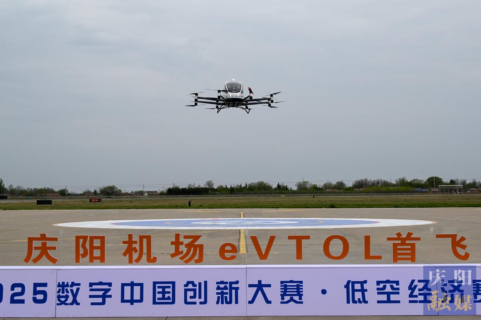 2025數(shù)字中國創(chuàng)新大賽·低空經(jīng)濟(jì)賽道技術(shù)成果驗(yàn)證環(huán)節(jié),基于北斗伏羲空中紅綠燈支持下的億航智能公司eVTOL慶陽首飛在慶陽機(jī)場完成,這是全國首次在民用航空機(jī)場內(nèi)完成的無人駕駛載人航空器首飛。