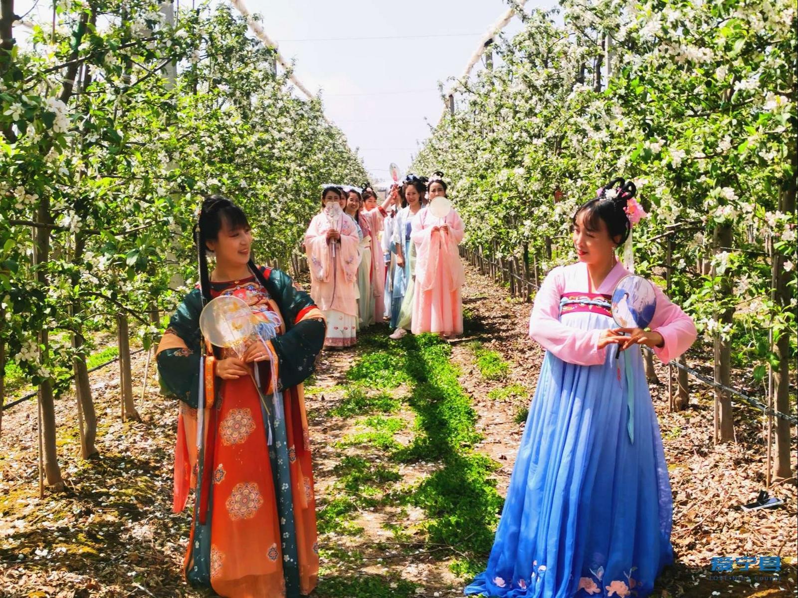 正洋蘋(píng)果公園內(nèi)蘋(píng)果花開(kāi)正艷