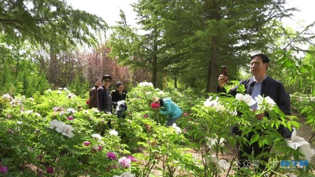 寧縣昔家牡丹園內(nèi)的游客正在打卡拍照