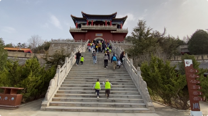 “上面是周祖陵,可以感受一下周祖文化,下面是藥王洞,可以體驗一下養(yǎng)生小鎮(zhèn),還有其他美食什么的?!庇慰蛷堊塑舱f。