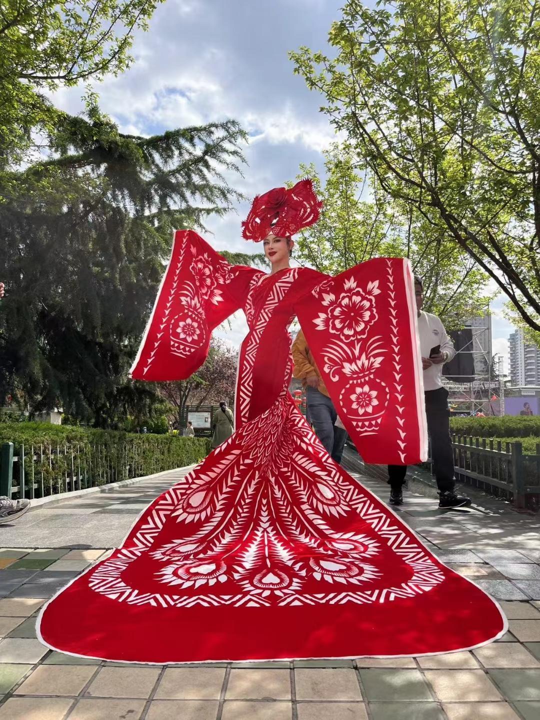 “每一件‘剪云裳’都凝結著隴東文化的風韻?!辨?zhèn)原縣文化館館長常燕介紹,團隊將傳統(tǒng)剪紙圖案融入到現(xiàn)代服裝上,既保留了即興創(chuàng)作的質樸靈動,又注入了時尚活力。2024年,“剪云裳”成功注冊國家專利,并在全國群眾文藝團隊展演中榮獲文旅部“百團匯演”優(yōu)秀稱號,成為甘肅省非遺創(chuàng)新轉化的典型案例。