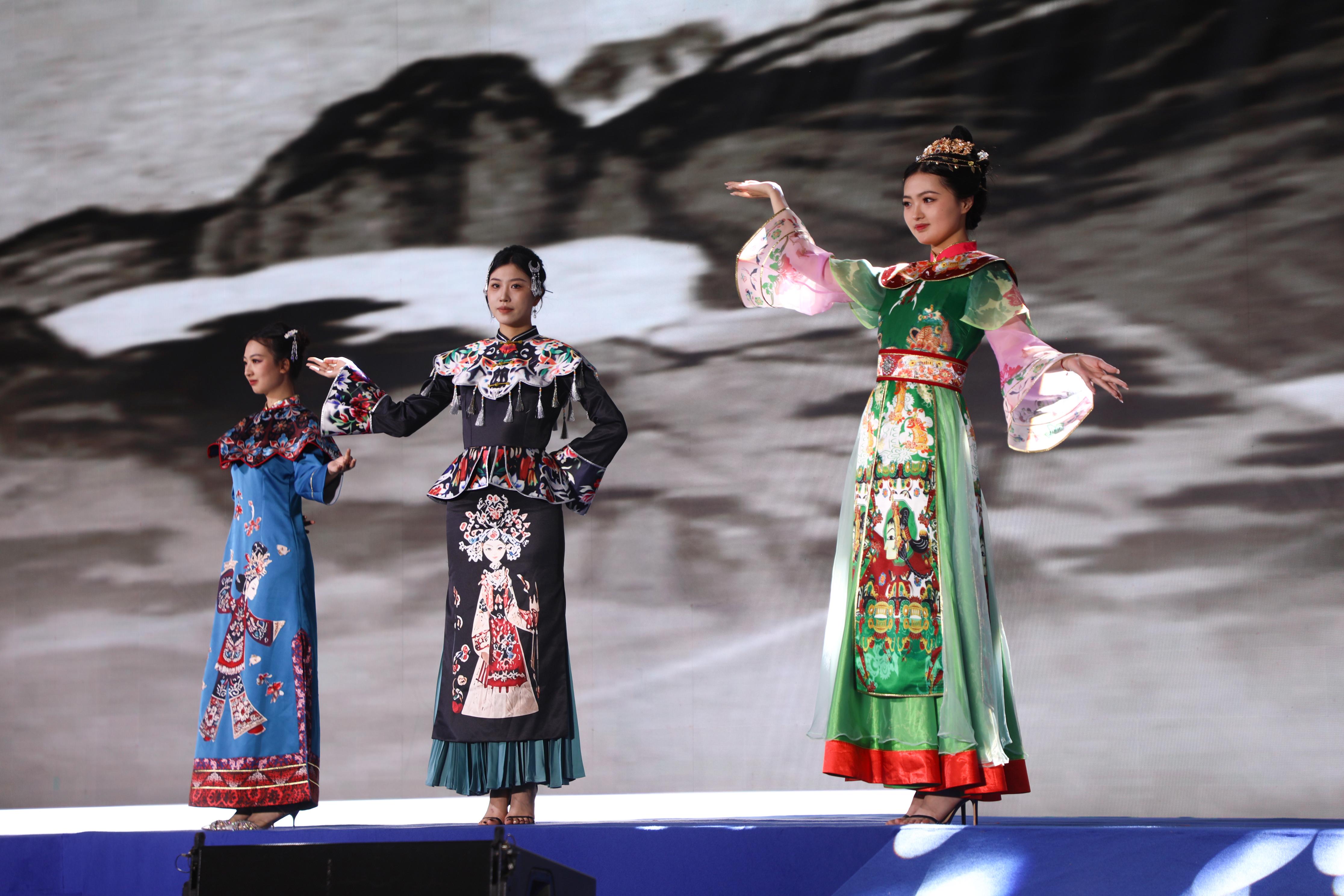 環(huán)縣皮影被譽為“東方魔術(shù)般的藝術(shù)”,其制作工藝極為考究,需經(jīng)過選皮、制皮、雕刻、著色等八大工序,最終形成線條流暢、色彩絢麗的影件。此次展演將皮影經(jīng)典紋樣——如戲曲臉譜、祥云瑞獸、古典建筑等融入現(xiàn)代時裝,既保留了皮影的非遺魅力,又賦予其流動的時尚韻律。
