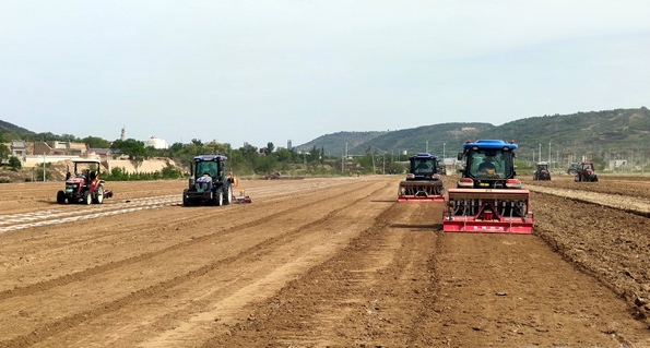 引進示范推廣北斗導航智能規(guī)范化作業(yè)技術。在前期農(nóng)情調(diào)查和氣象預報綜合分析研判的基礎,指導避開大風天氣,適時開展田間播種,引進示范應用帶有北斗導航智能化作業(yè)的農(nóng)機裝備,投入深翻犁地、旋耕施肥、壓滴灌帶覆膜播種一體機等農(nóng)機具14臺套,通過先犁后旋、覆膜播種協(xié)同推進的方式,集中開展田間作業(yè),有效提升了作業(yè)效率,日作業(yè)面積達到200余畝,充分利用近日晴好無風天氣盡快完成玉米播種作業(yè),同時減少了耕地整理后未能及時覆膜播種失墑跑墑的可能,保障了玉米順利出苗。
