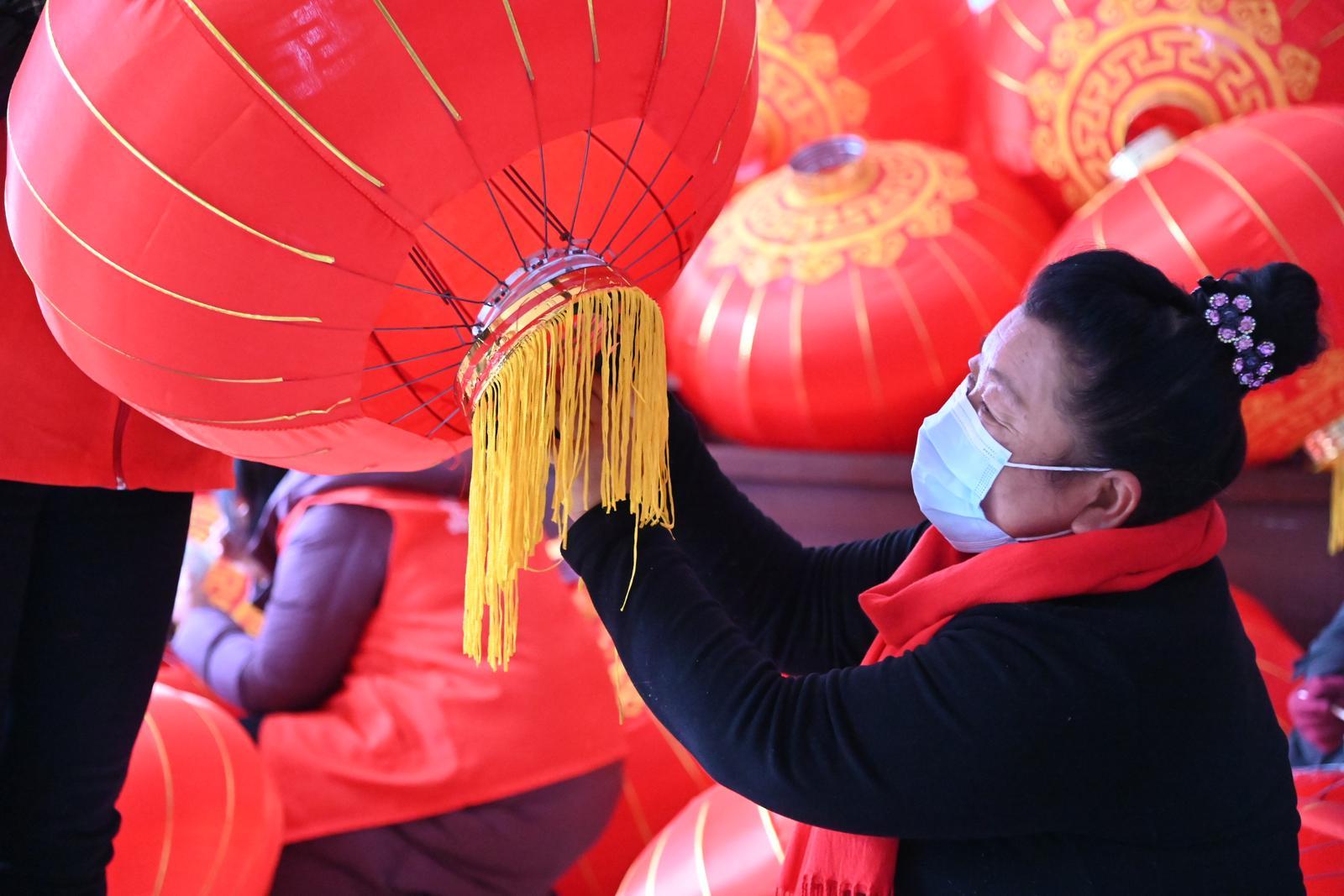 賀慶春正在給學(xué)員們師范套燈籠穗