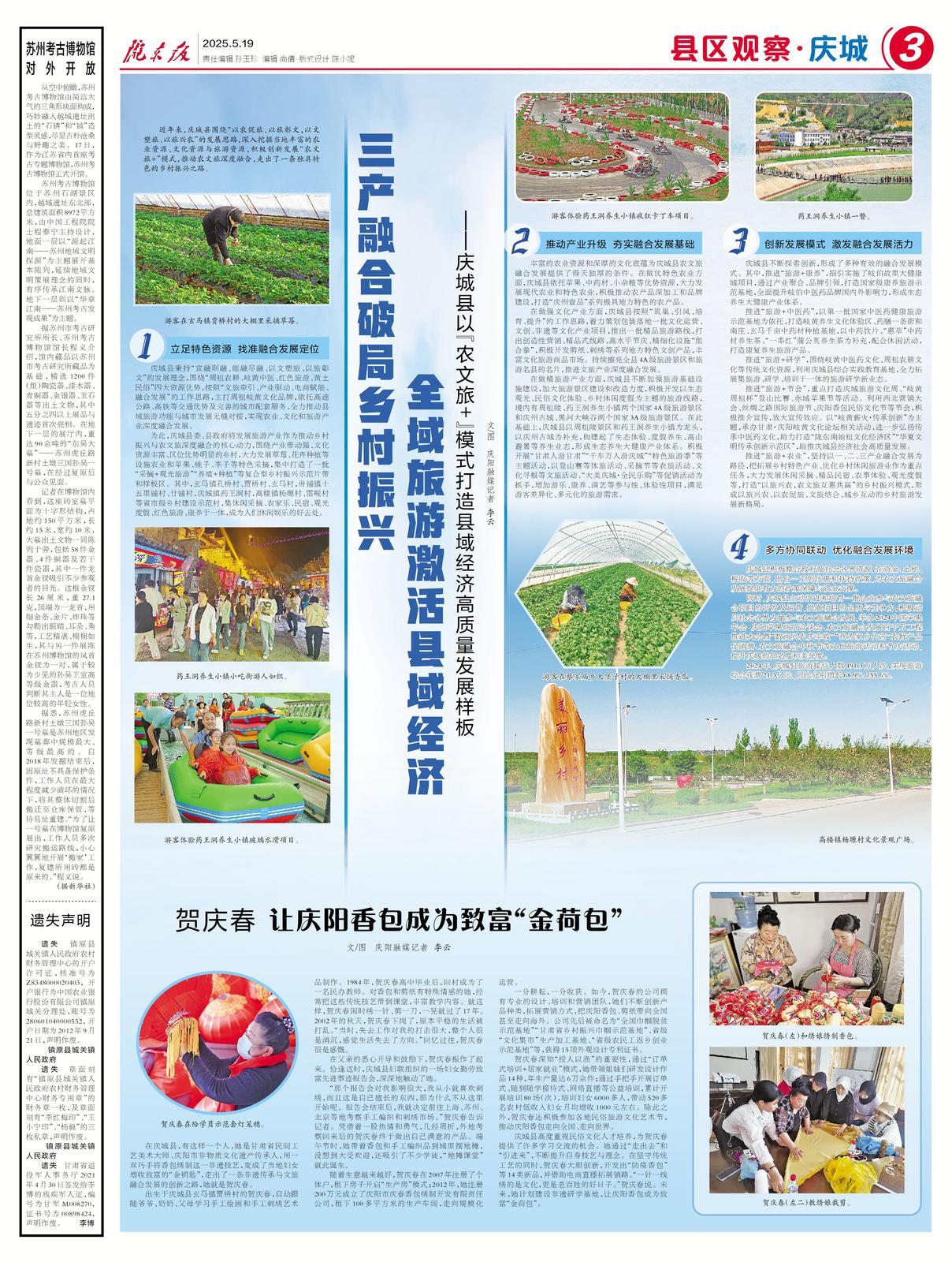 慶城縣秉持“宜融則融、能融盡融、以文塑旅、以旅彰文”的發(fā)展理念,圍繞“周祖農(nóng)耕、岐黃中醫(yī)、紅色旅游、黃土民俗”四大資源優(yōu)勢(shì),按照“文旅牽引、產(chǎn)業(yè)驅(qū)動(dòng)、電商賦能、融合發(fā)展”的工作思路,主打周祖岐黃文化品牌,依托高速公路、高鐵等交通優(yōu)勢(shì)及完善的城市配套服務(wù),全力推動(dòng)縣域旅游功能與城市發(fā)展無(wú)縫對(duì)接,實(shí)現(xiàn)農(nóng)業(yè)、文化和旅游產(chǎn)業(yè)深度融合發(fā)展。