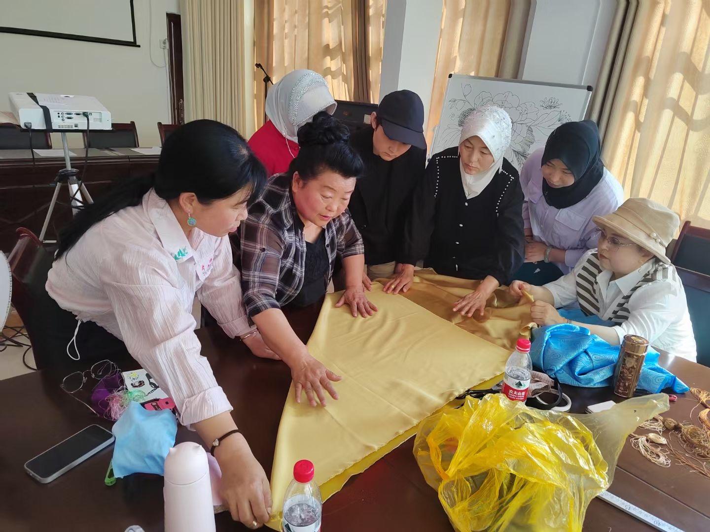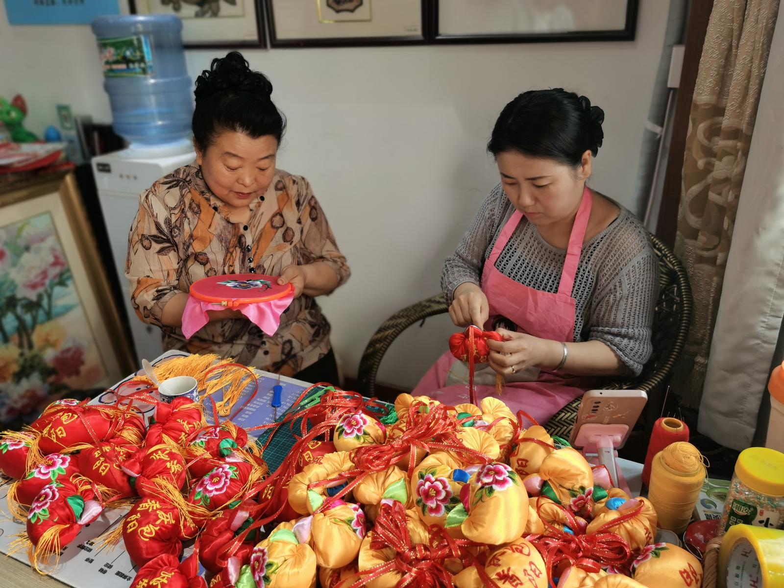 賀慶春帶領(lǐng)繡娘們一針一線繡香包