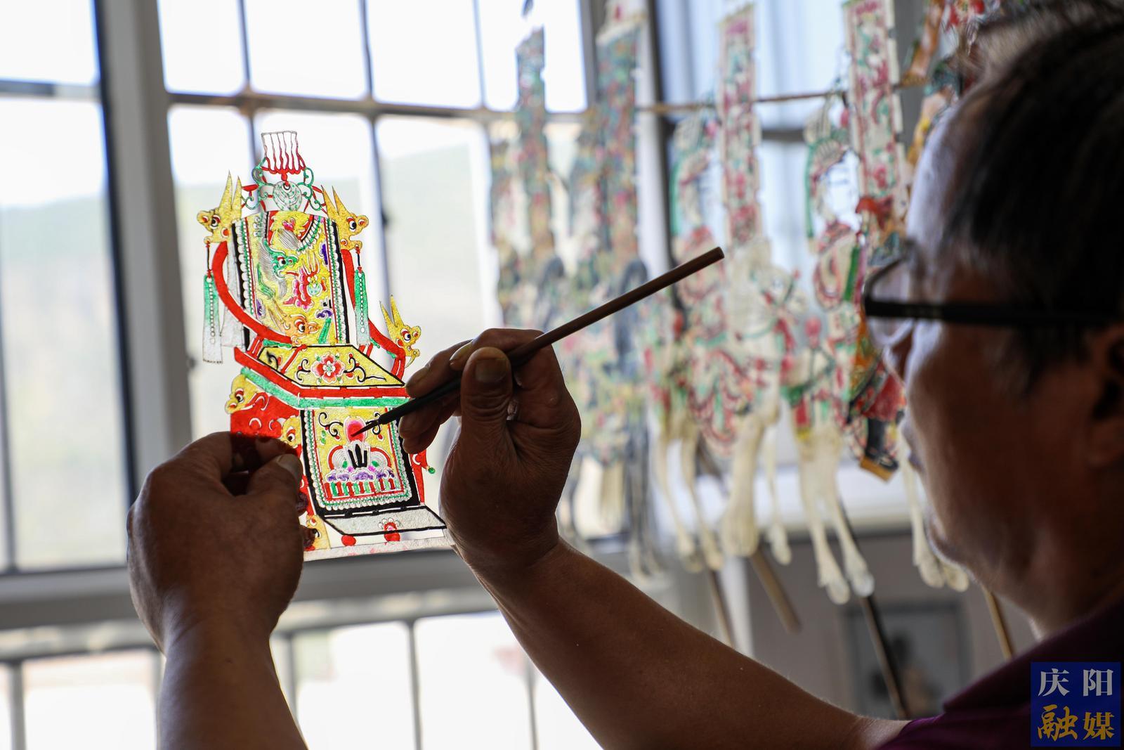 皮影上色。 慶陽融媒記者 俄少飛 攝