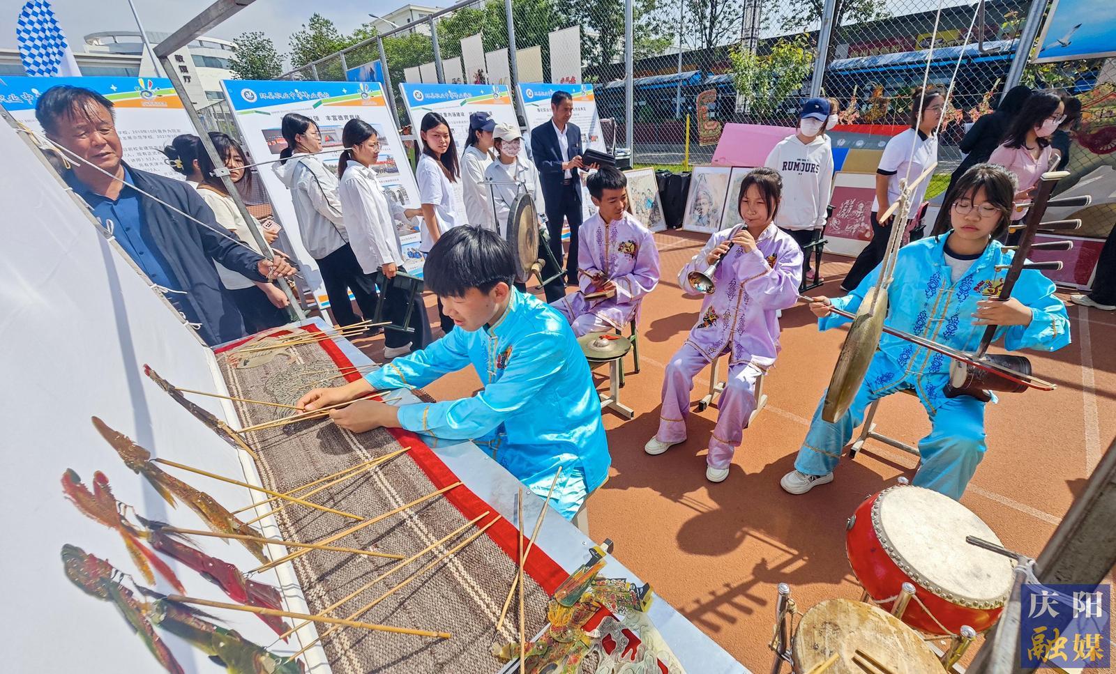 環(huán)縣職中學(xué)生展示皮影戲。 慶陽融媒記者 陳飛攝