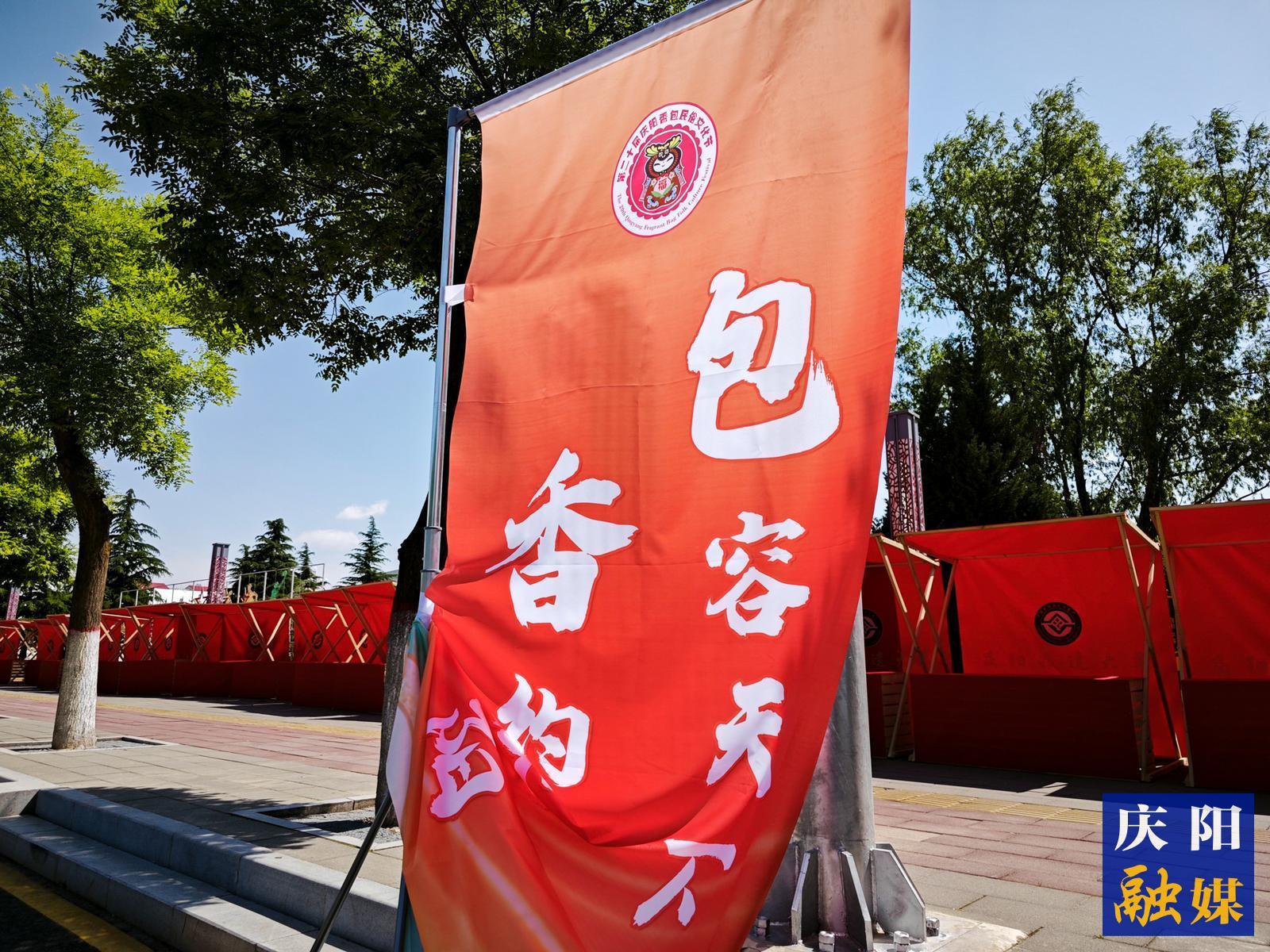 西峰區(qū)岐黃大道兩側道旗飄揚,非遺大集展位完成搭建。