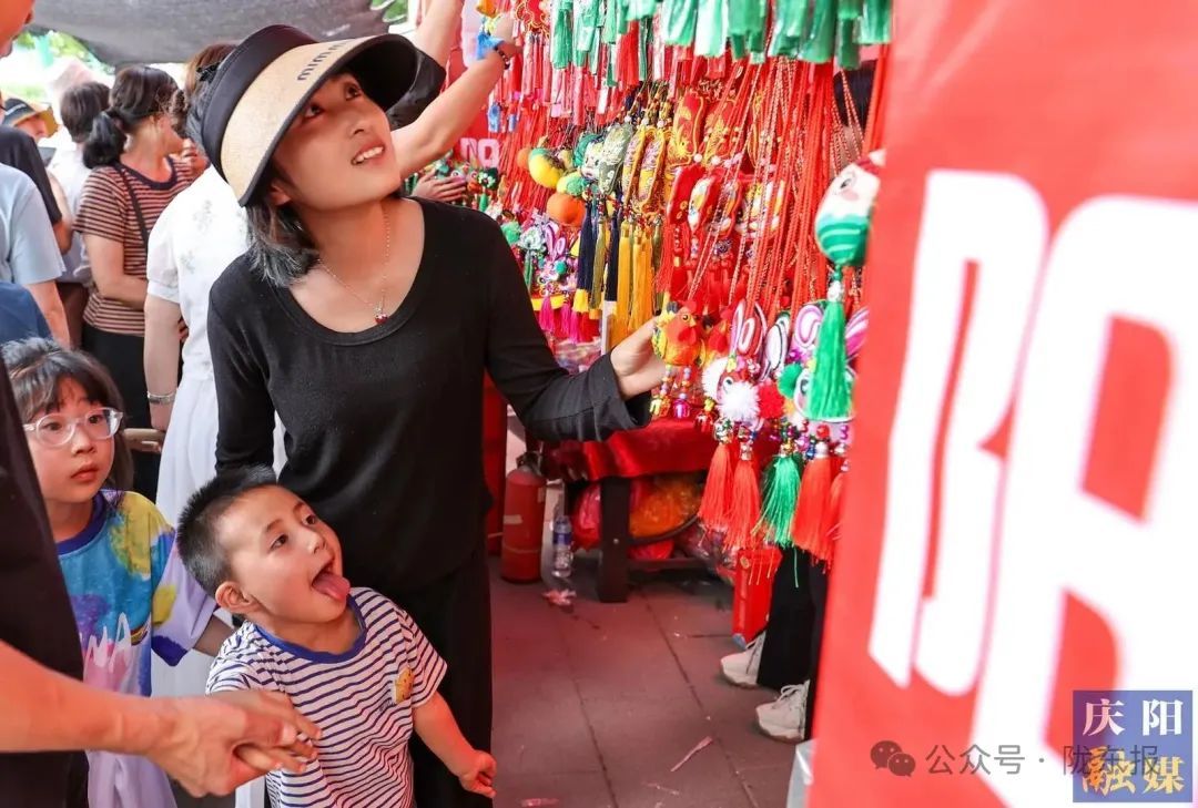 精美的香包吸引市民駐足觀賞。 慶陽融媒記者 陳飛 攝