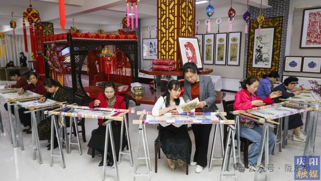 繡娘們?cè)趯W(xué)習(xí)刺繡技法。 慶陽融媒記者 俄少飛 攝