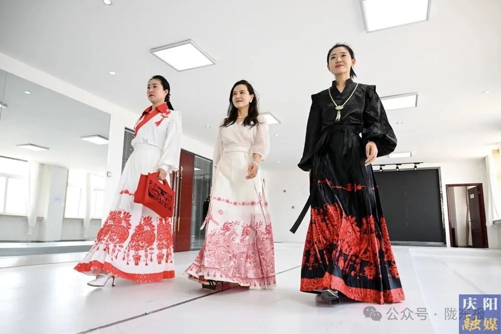 模特穿著融入慶陽剪紙?jiān)氐鸟R面裙。 慶陽融媒記者 俄少飛 攝