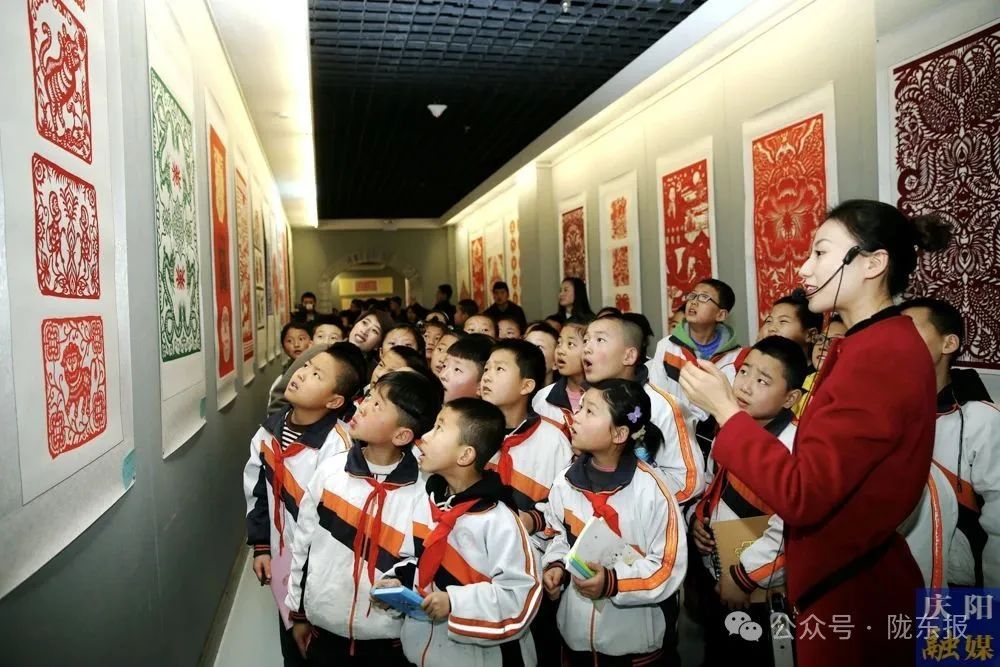 小學(xué)生在慶陽市博物館觀看剪紙展覽。 慶陽融媒記者 趙彩霞 攝