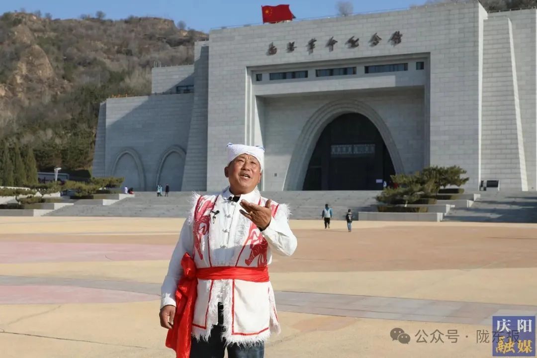 民間歌手在南梁革命紀(jì)念館前演唱紅色民歌。 慶陽融媒記者 俄少飛 攝