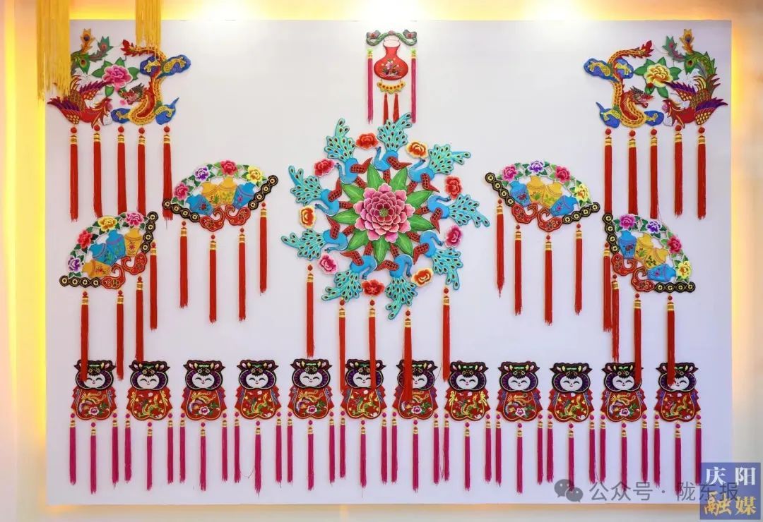 慶陽剪紙傳承人展示巨幅剪紙作品,喜迎節(jié)會(huì)。慶陽融媒記者 趙彩霞 攝