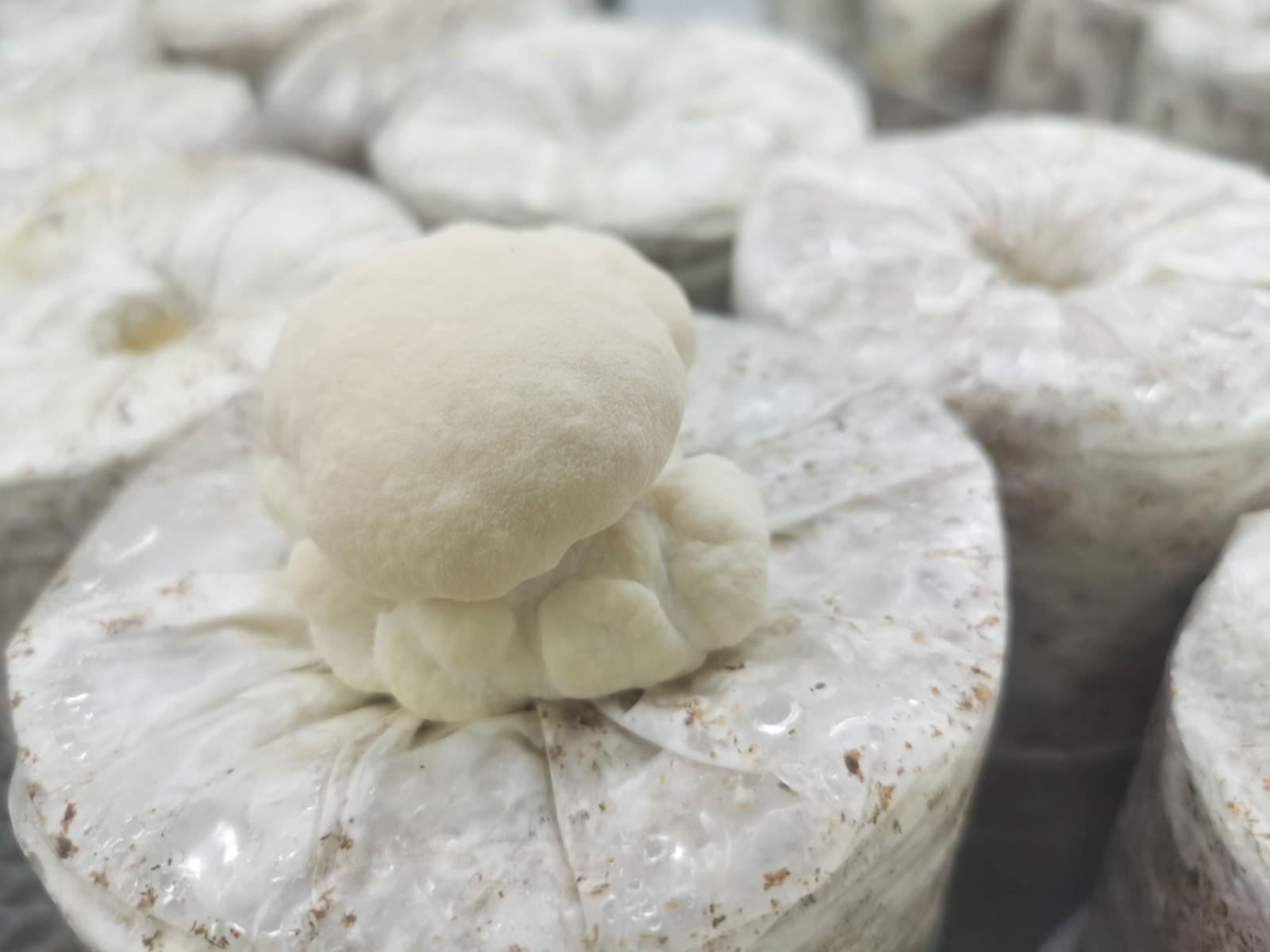 智能化菇房內(nèi)新長出的猴頭菇