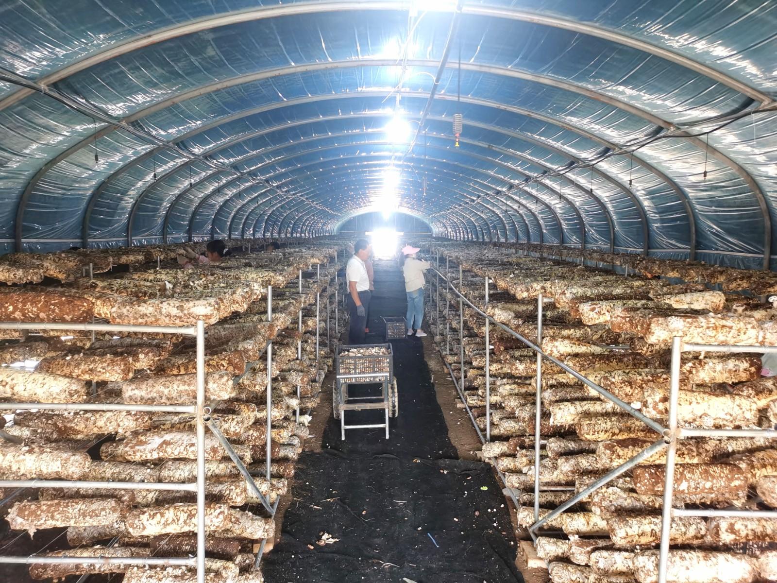 慶陽百禾農(nóng)業(yè)科技有限公司的大棚內(nèi)工人正在采摘香菇