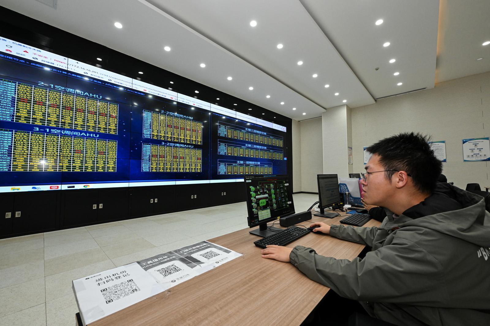 慶陽華為云計算大數(shù)據(jù)中心ECC應急指揮中心,工作人員監(jiān)測算力設備狀態(tài)。慶陽融媒記者 俄少飛 攝