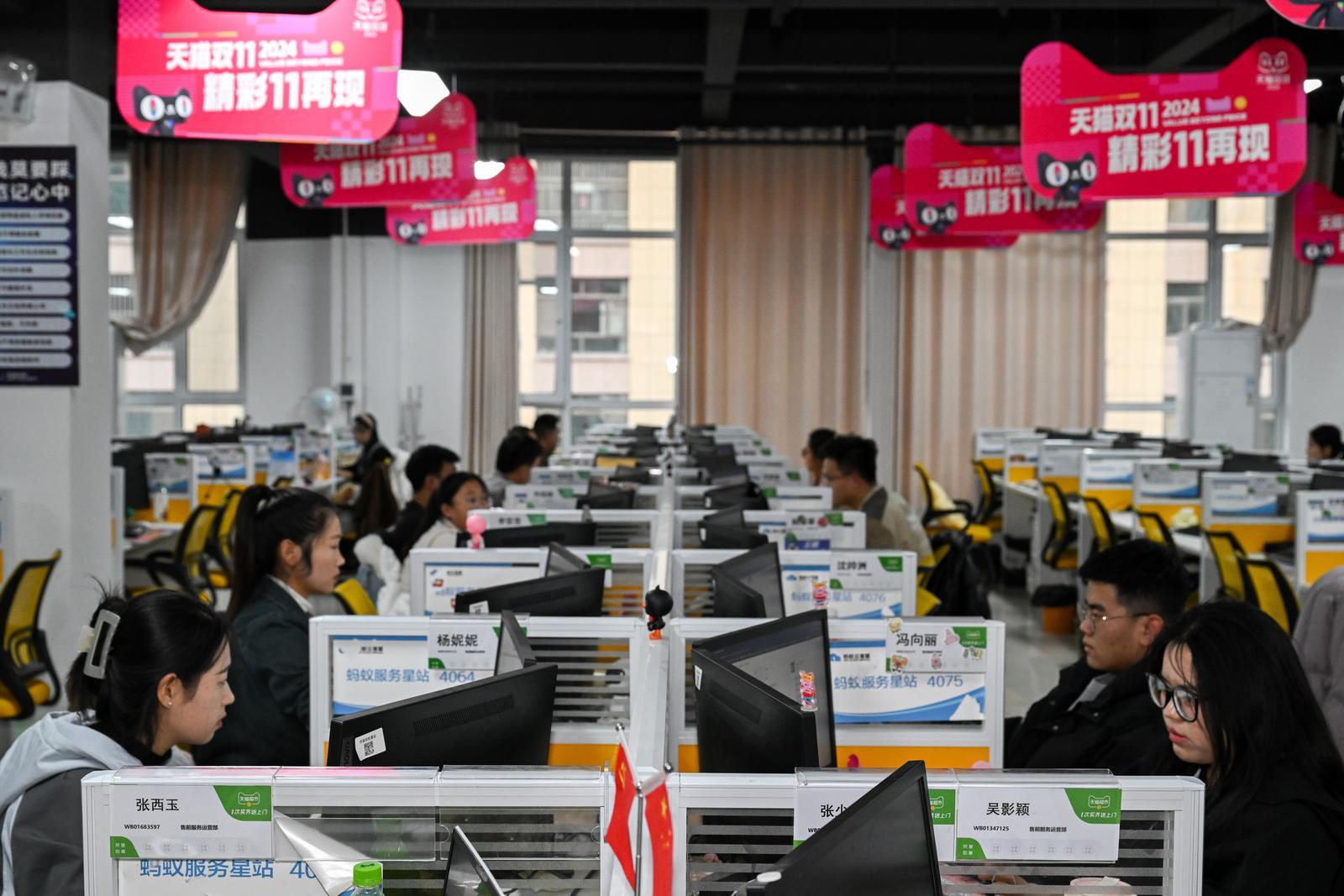 環(huán)縣數(shù)字就業(yè)基地,天貓官方客服正在工作。慶陽融媒記者 俄少飛 攝