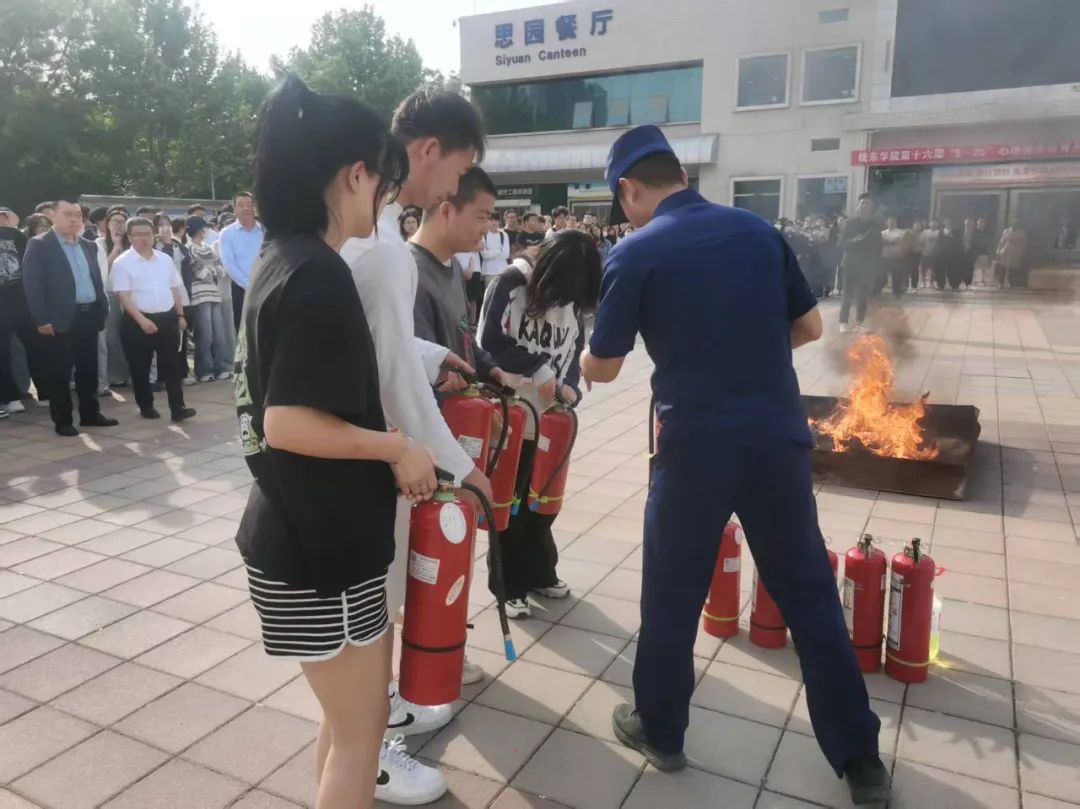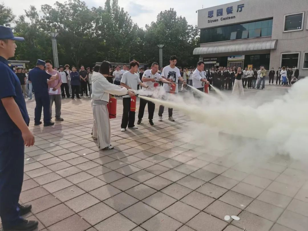 活動中,消防宣傳員結(jié)合校園火災(zāi)案例,講解常見隱患、預(yù)防措施及逃生技巧,針對實驗室、宿舍、食堂等重點區(qū)域,宣傳員重點強調(diào)了違規(guī)使用大功率電器、私拉亂接電線、堵塞消防通道等行為的危害性,引導(dǎo)師生樹立“隱患險于明火,防范勝于救災(zāi)”的安全理念。隨著校園內(nèi)模擬煙霧彈升起,警報聲驟然響起,全校師生迅速啟動應(yīng)急預(yù)案。在輔導(dǎo)員和宿管員的引導(dǎo)下,各班級學(xué)生用濕毛巾捂住口鼻,彎腰低姿,按照預(yù)定疏散路線快速、有序地撤離至操場安全區(qū)域。隨后,宣傳員向廣大師生展示消防器材并演示滅火器使用方法,并邀請師生代表上臺實操,親身體驗撲滅初期火災(zāi)的過程。不少學(xué)生表示,通過親手操作,原本陌生的消防器材變得“得心應(yīng)手”,也更加深刻認(rèn)識到消防安全的重要性。