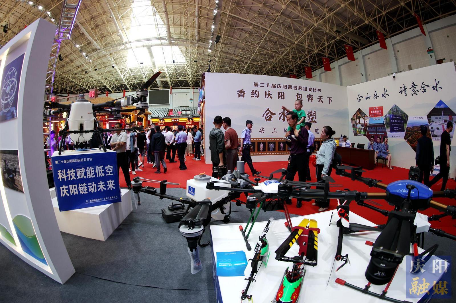 非遺沉浸式體驗(yàn)活動主館智慧文旅體驗(yàn)區(qū),無人機(jī)飛行器展區(qū)吸引游客觀賞咨詢。