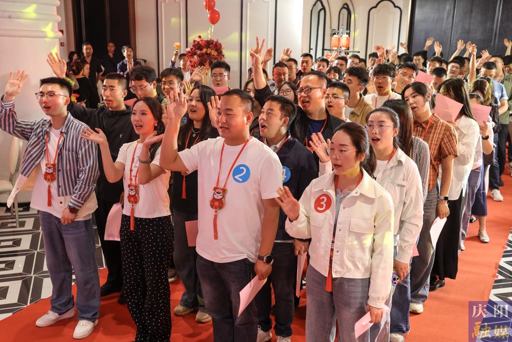 在全場青年齊聲宣讀《婚戀新風(fēng)移風(fēng)易俗倡議書》。