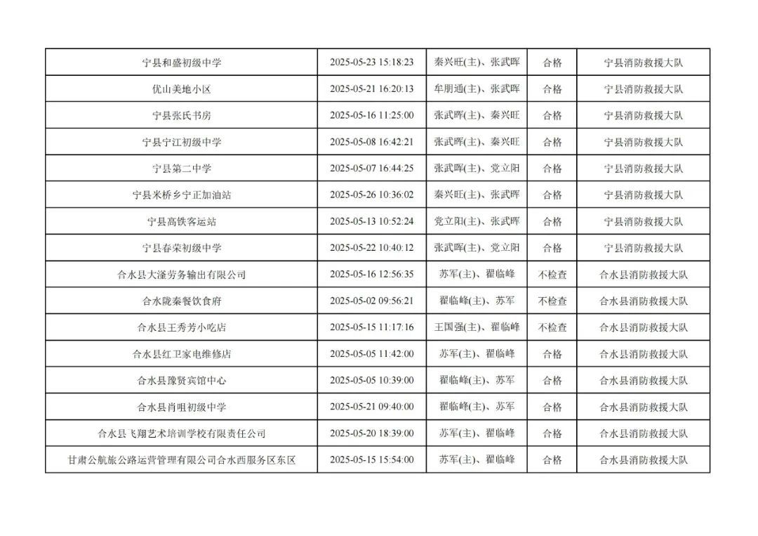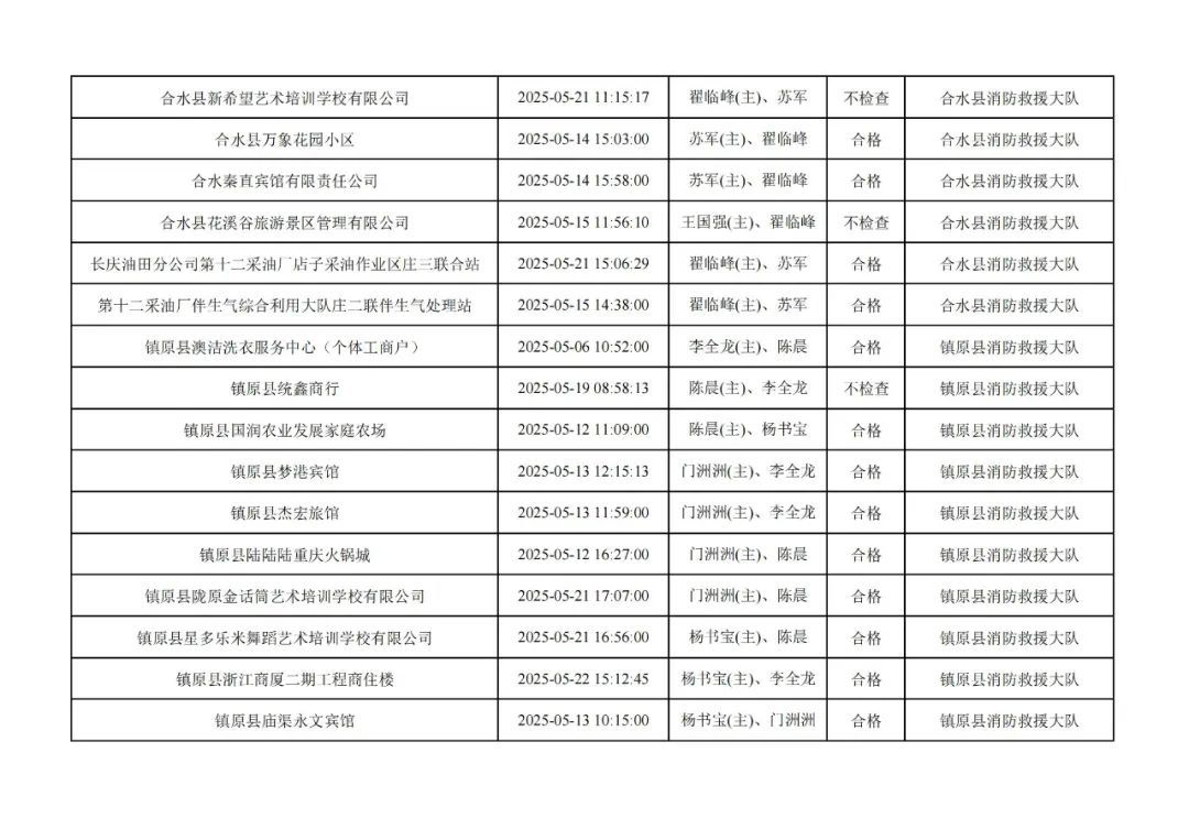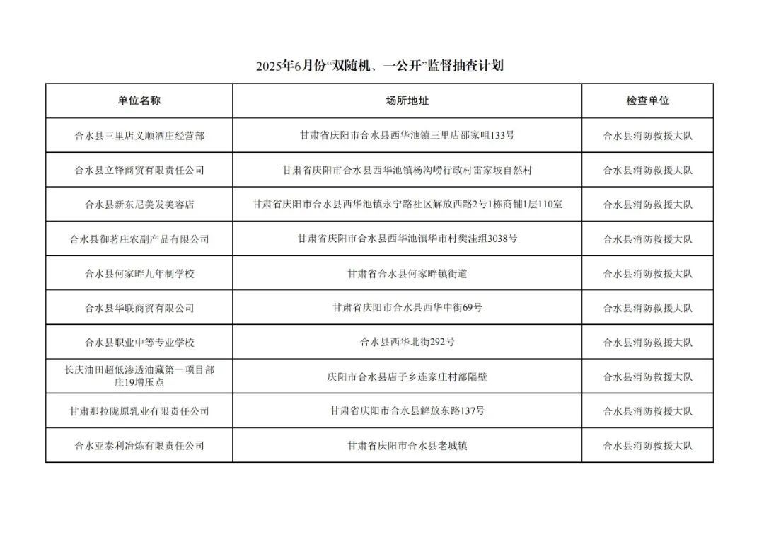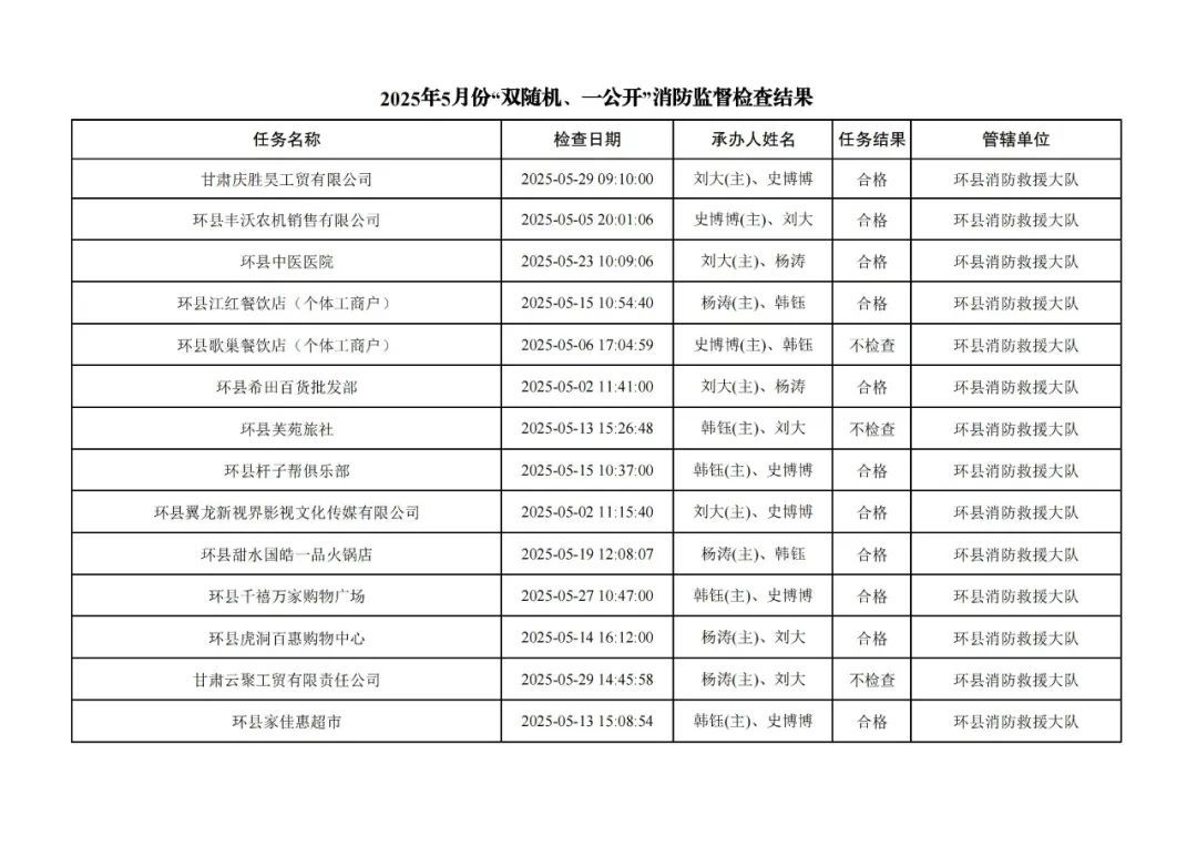 為貫徹落實(shí)《消防救援局關(guān)于全面推行“雙隨機(jī)、一公開”消防監(jiān)管工作的通知》(應(yīng)急消〔2019〕241號(hào)),認(rèn)真組織實(shí)施“雙隨機(jī)、一公開”消防監(jiān)管工作,現(xiàn)將2025年5月份“雙隨機(jī)、一公開”消防監(jiān)督檢查結(jié)果及2025年6月份監(jiān)督抽查計(jì)劃公示如下: