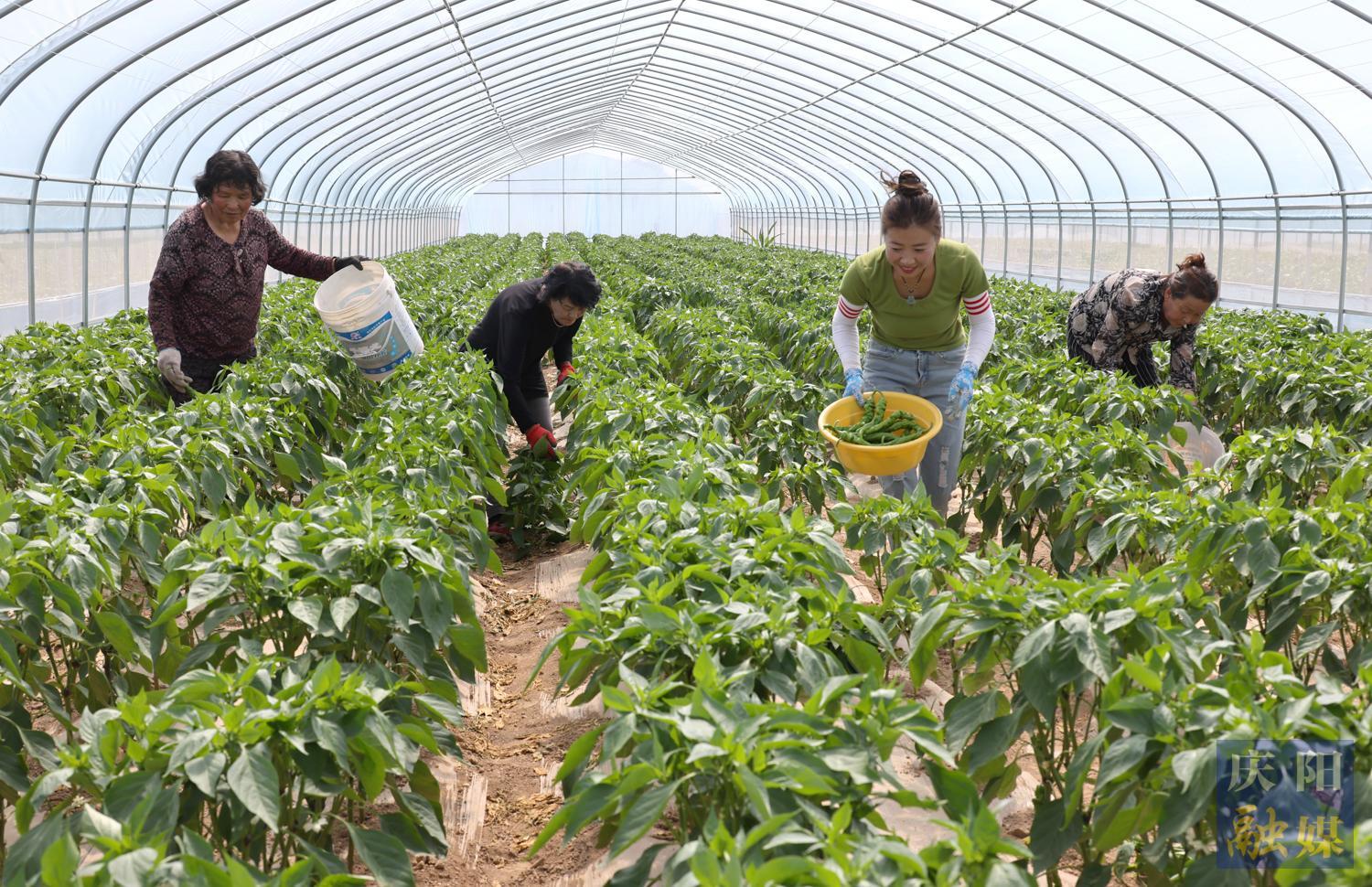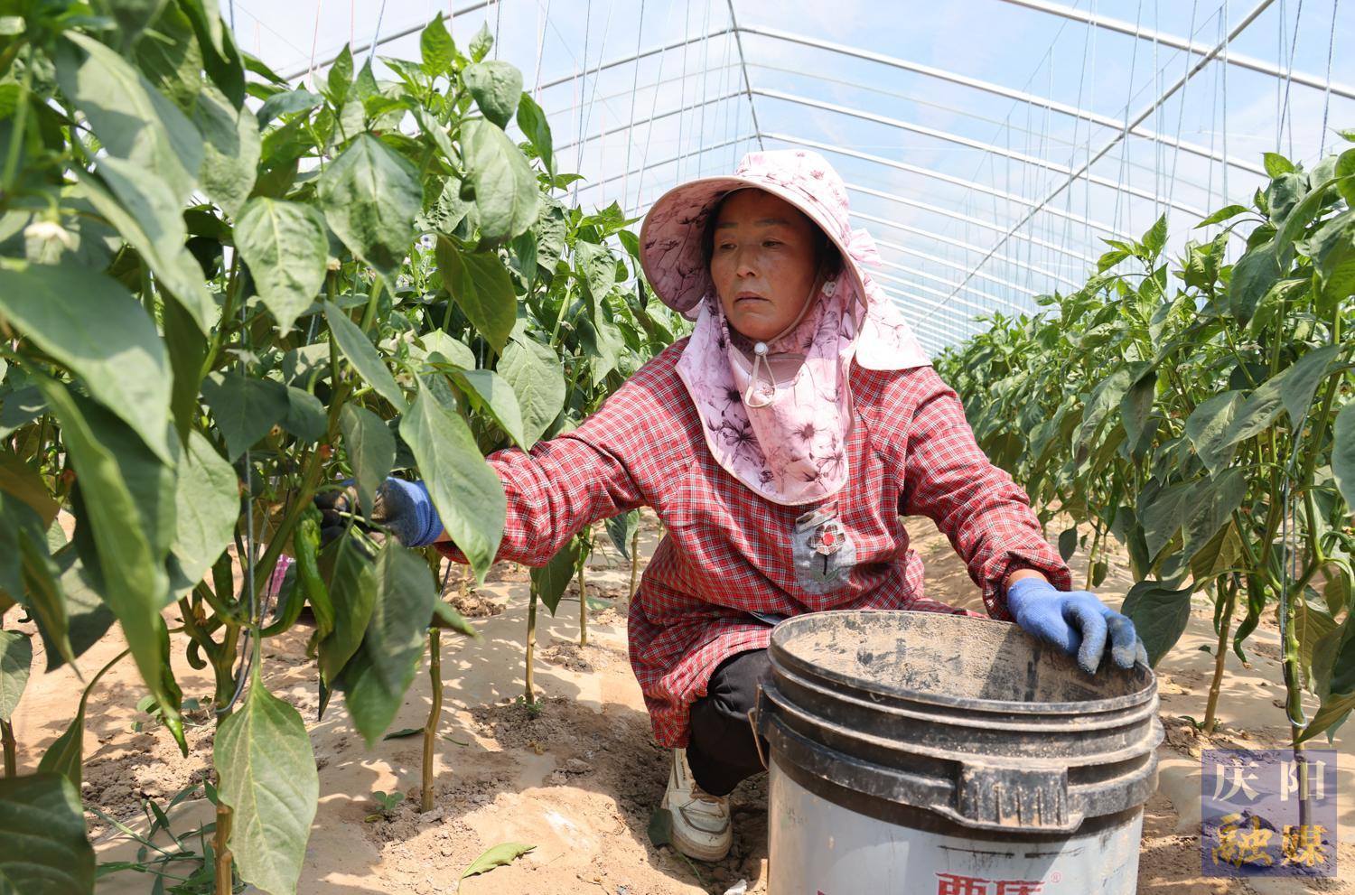 6月4日,西峰區(qū)彭原鎮(zhèn)上何村村民采摘辣椒。