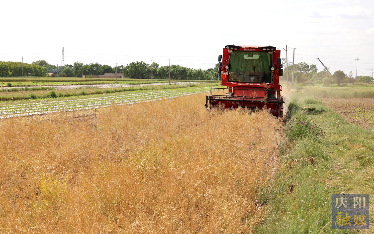 西峰區(qū)后官寨鎮(zhèn)路堡村村民收割菜籽。